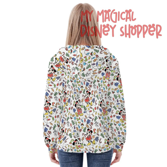 My Magical Christmas Mouse Womens All Over Print Classic Zip Up Hoodie Warm Jacket