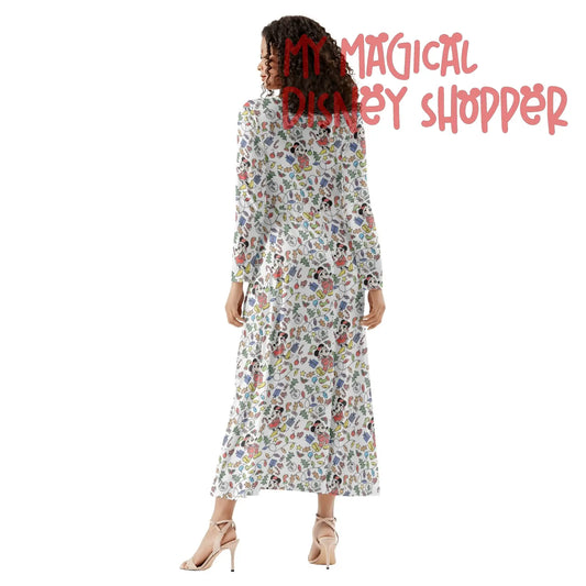 Very Merry Christmas Mouse Womens Long Sleeves Flowy Long Dress