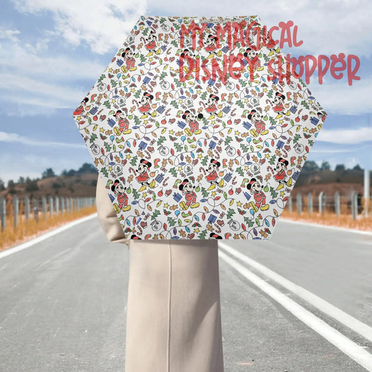 Very Merry Christmas Mouse Lightweight Auto Open & Close Umbrella Printing Outside