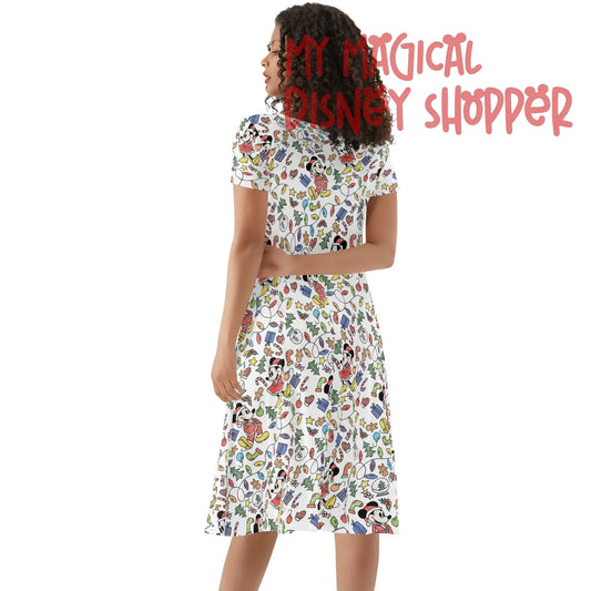Very Merry Christmas Mouse Womens Short Sleeve Ruffle Dress