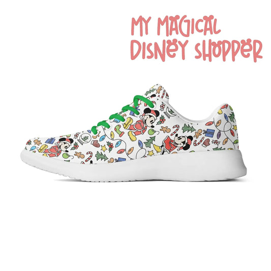 Very Merry Christmas Party Mouse Adults Soft EVA & Jersey Fleece Fabric for Flat Tennis Shoes Athletic Shoes