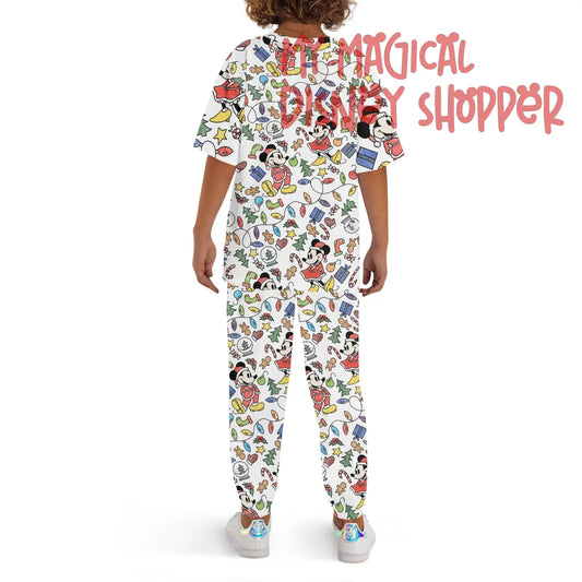 Very Merry Christmas Party Mouse Childrens Sleepwear Short Sleeve Shirt and Long Pants Set