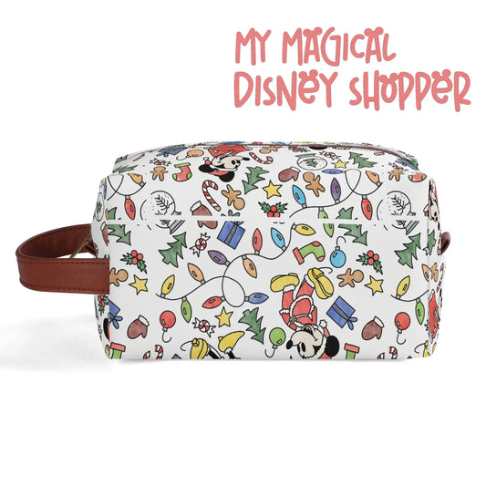 Very Merry Christmas Party Mouse Travel PU Leather Toiletry and Makeup Cometic Organizer Bag