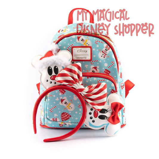 Disney Loungefly Mini Backpack - Snowman Mickey And Minnie Mouse Mini Backpack With Ears Headband