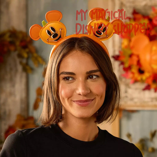 Mickey Mouse Jack-o'-Lantern Halloween Ear Headband for Adults
