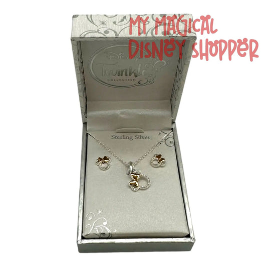 Minnie Mouse Diamond Accent Pendant And Earring Set In Sterling Silver With 18k Rose Gold Plated Accents