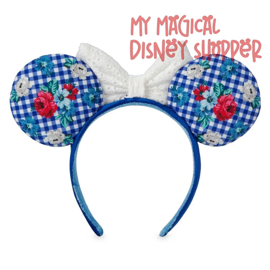 Cottage Floral Gingham With White Eyelet Bow Disney Minnie Ear Headband