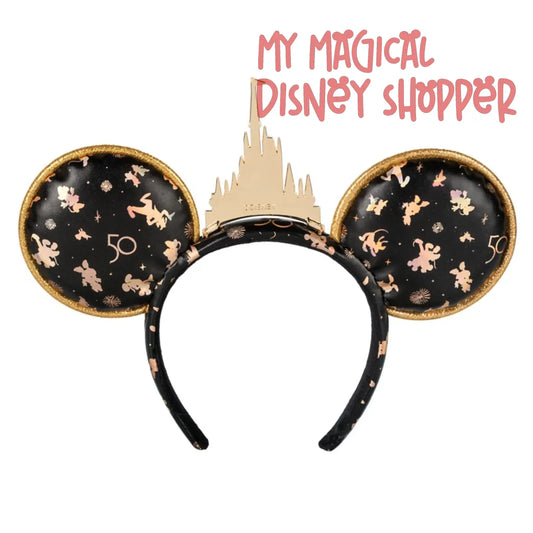 Walt Disney World 50th With Gold Castle Disney Minnie Ears Headband