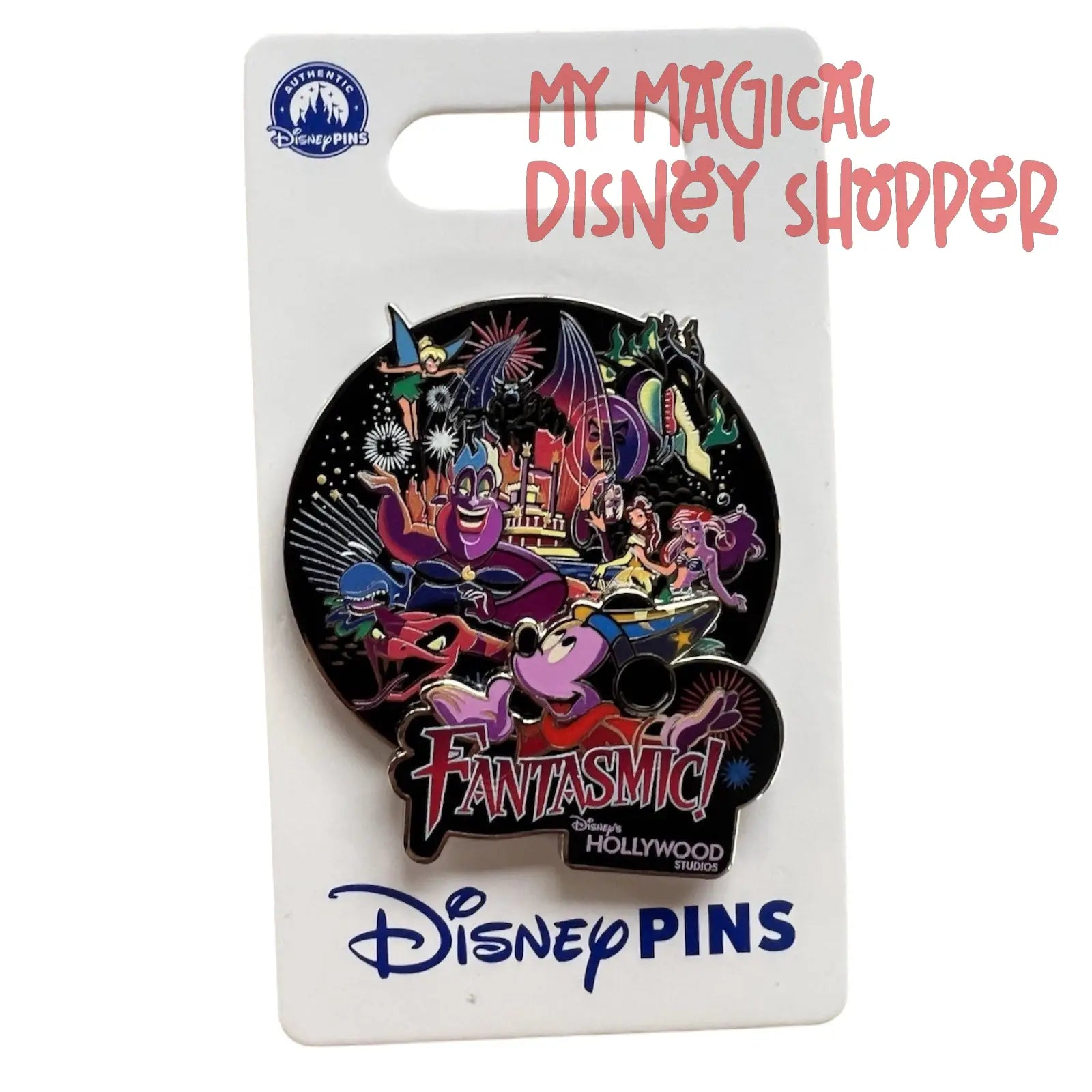 This limited edition collectible features a beautifully detailed design inspired by the iconic Fantasmic! show — a dazzling blend of Disney magic, music, and imagination. Perfect for Disney fans and pin collectors alike, this unique piece of memorabilia captures the wonder and nostalgia of an unforgettable Disney Parks experience.