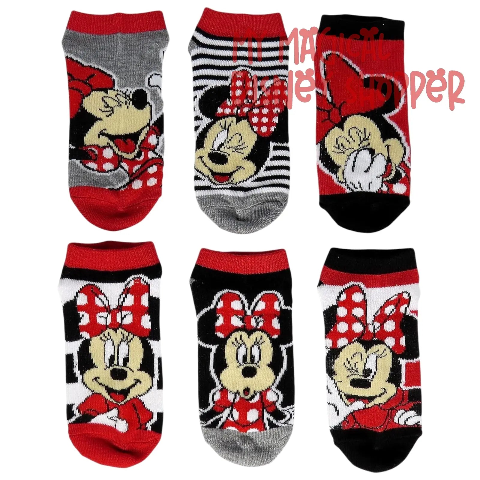 🧦 Disney Minnie Mouse Ankle Socks – 5-Pack (Kids Size 7–10)