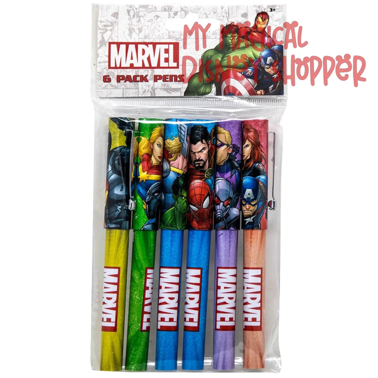 The Avengers & Spider-Man Ballpoint Pen Set, 6 Pack, is a must-have for Marvel fans. Featuring vibrant designs of popular superheroes like Spider-Man, Iron Man, Captain America, and more, these pens add a fun, heroic twist to everyday writing. Each pen offers smooth, reliable ink flow and comfortable grip, perfect for school, work, or journaling. Whether you're jotting down notes or unleashing your creative powers, this pen set brings a touch of superhero flair to your writing routine.