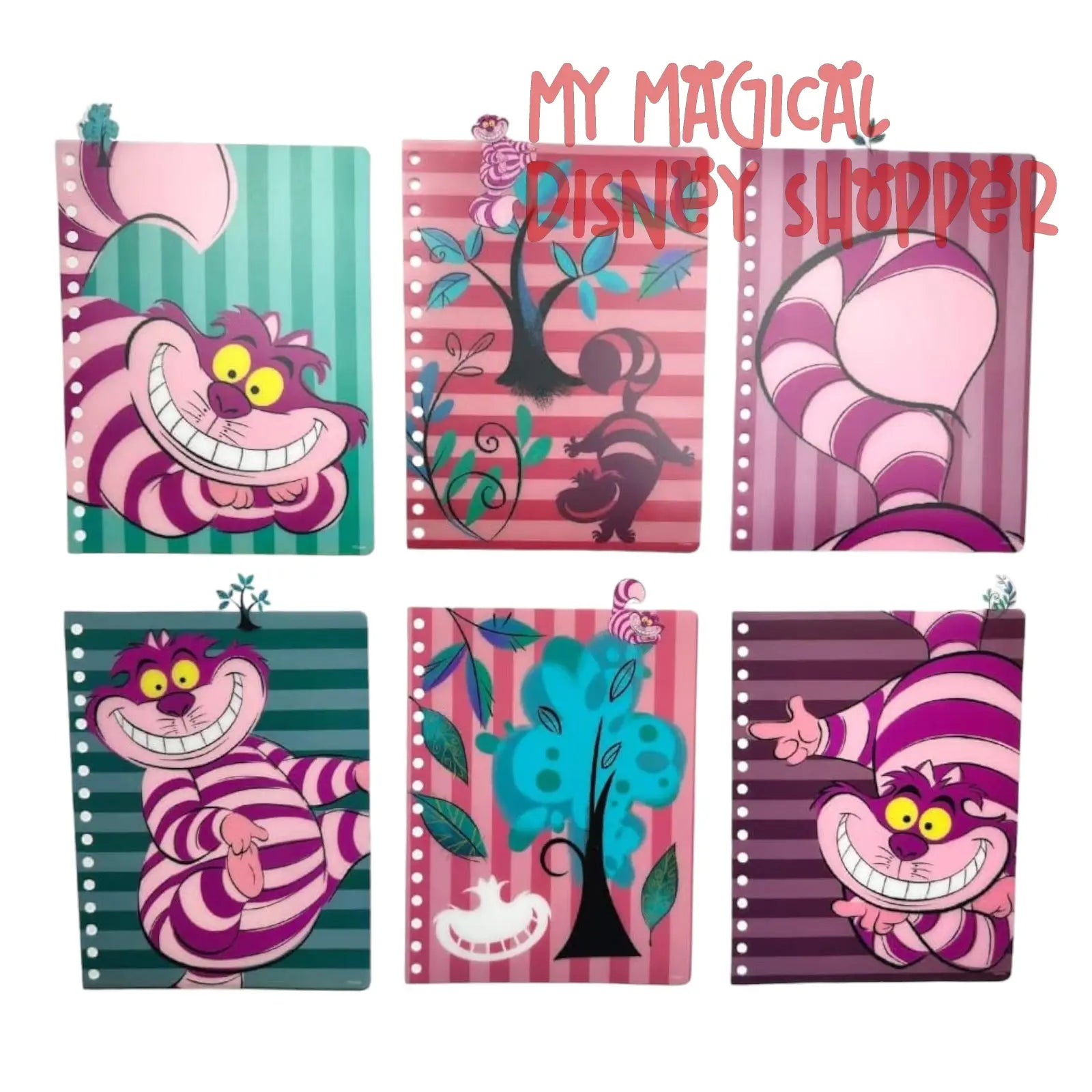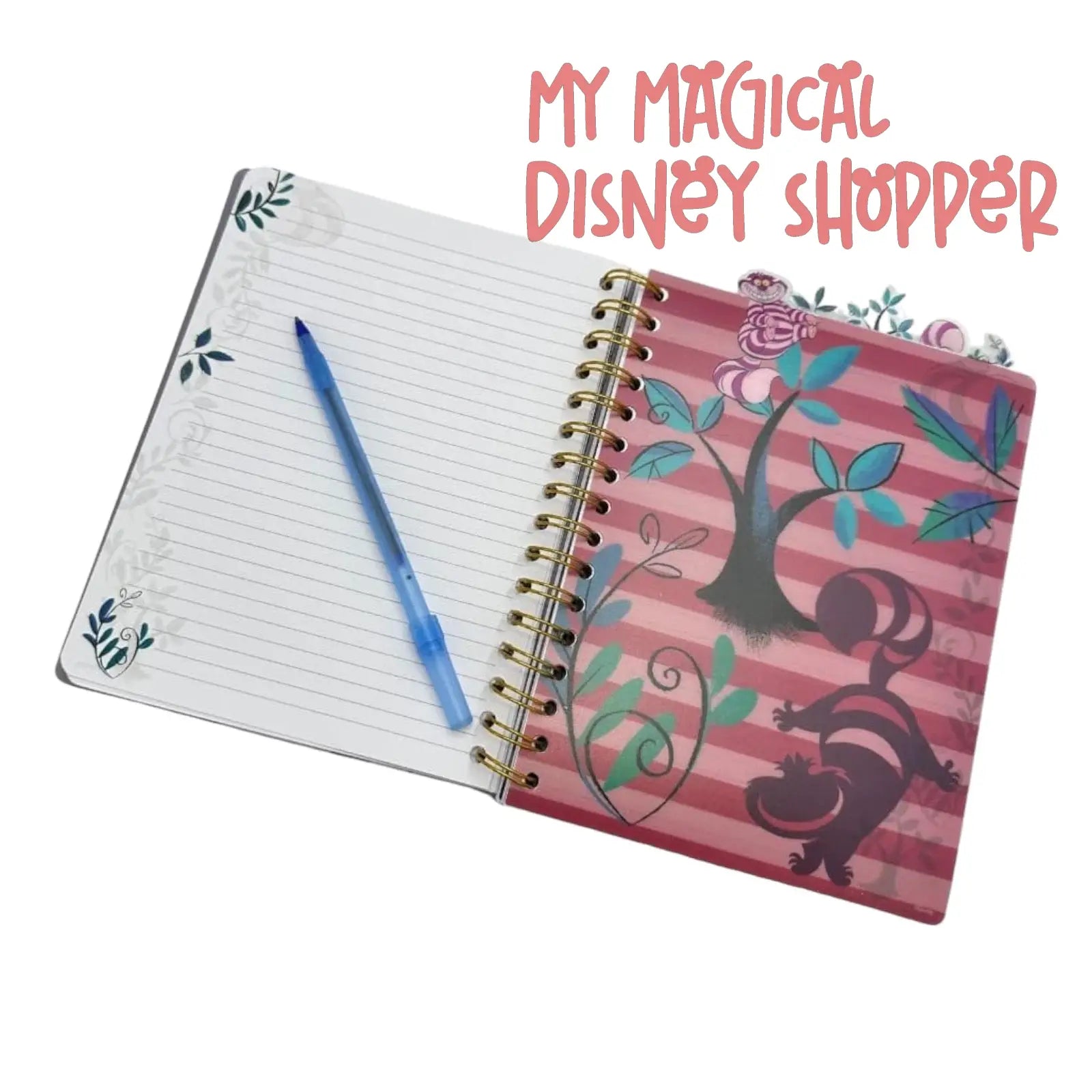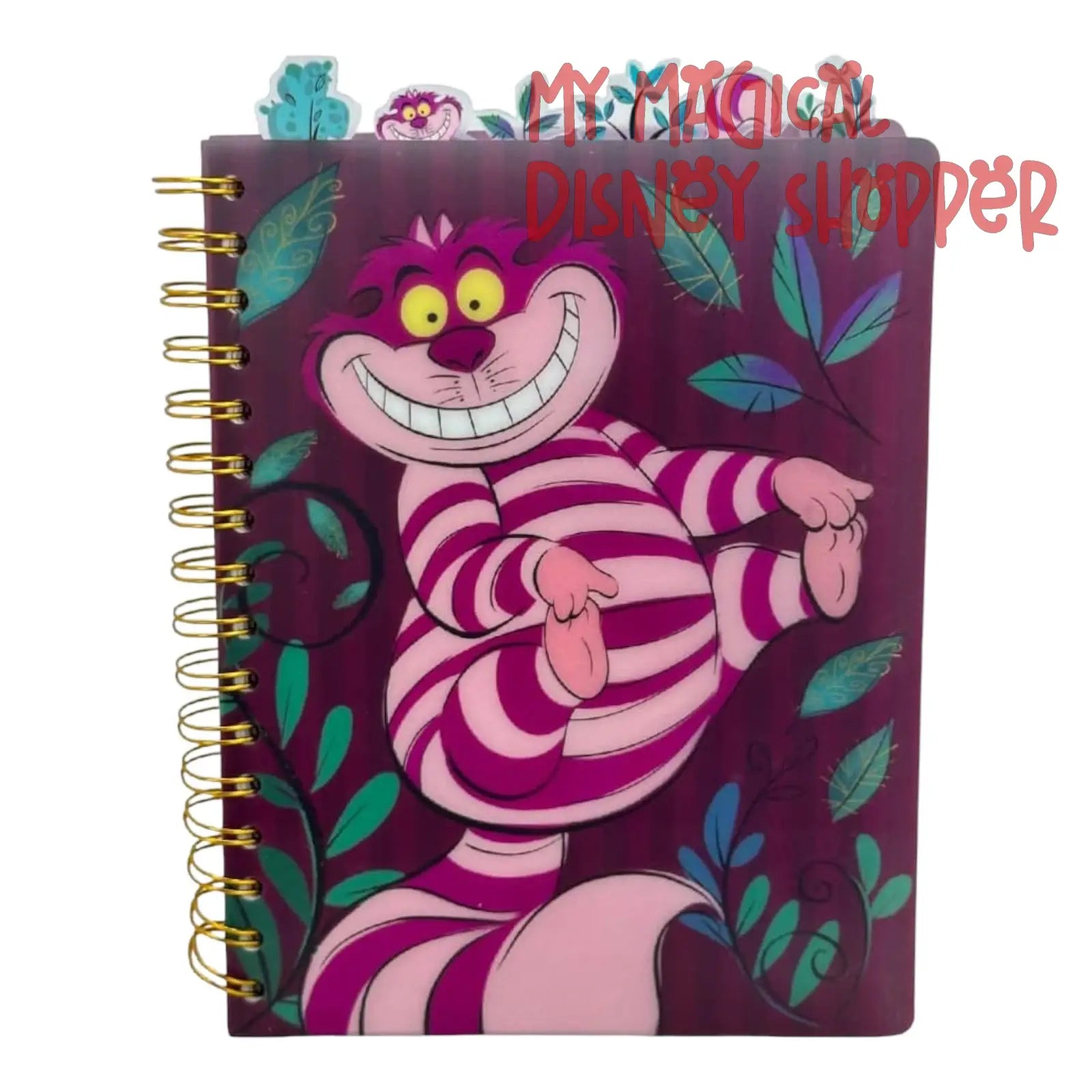 Taking notes on all the interesting characters in Wonderland? Cheshire Cat can help with that! This tabbed journal from Alice in Wonderland features Cheshire Cat on the cover, with 6 tab dividers of him and foliage. The lined pages have a leaf border with his signature tail on the corner.