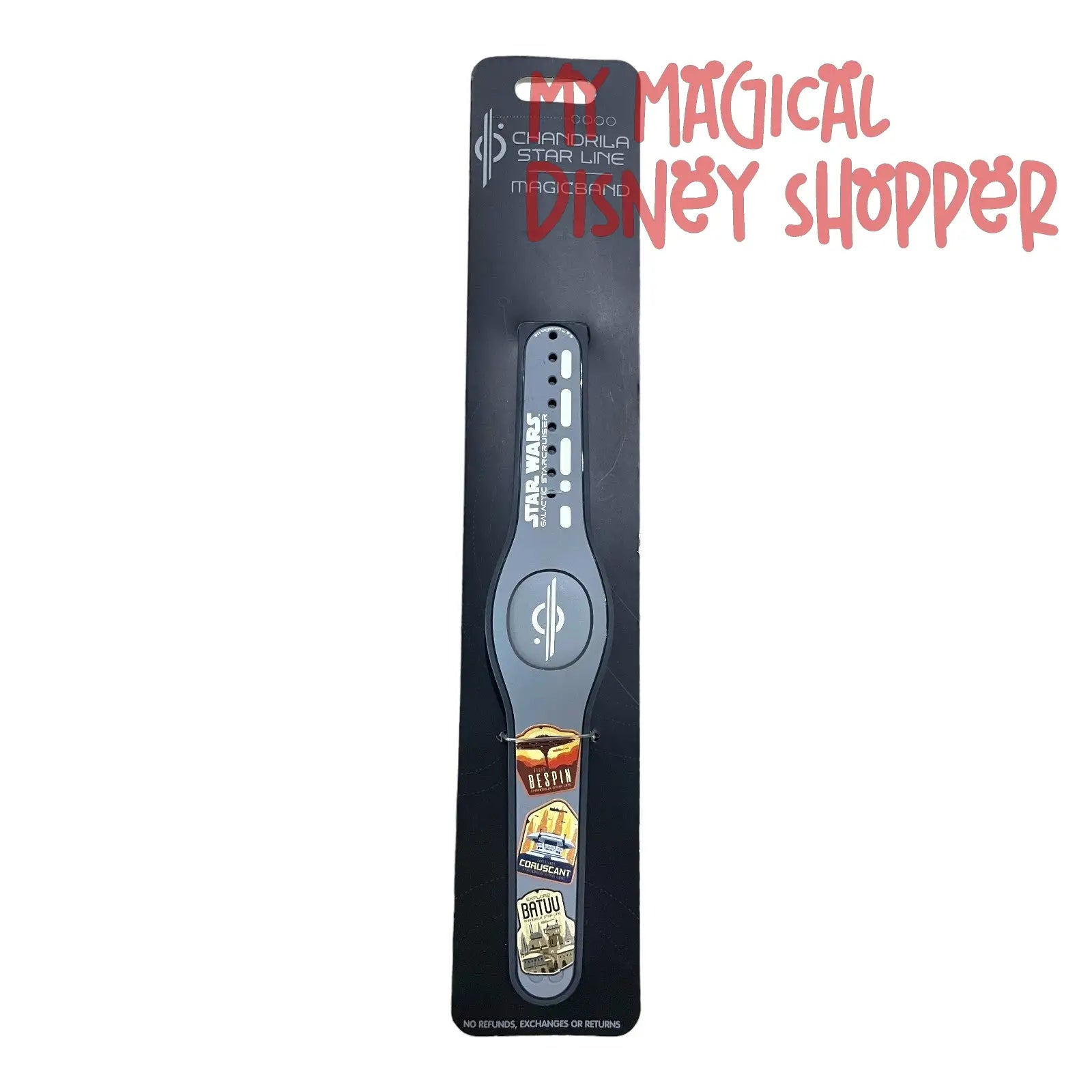 This exclusive Magicband can only be obtained in the gift shop on the Chandrila Star Line Halcyon Galactic Starcruiser. This Magicband include "patches" from Bespin, Batuu and Corucant.