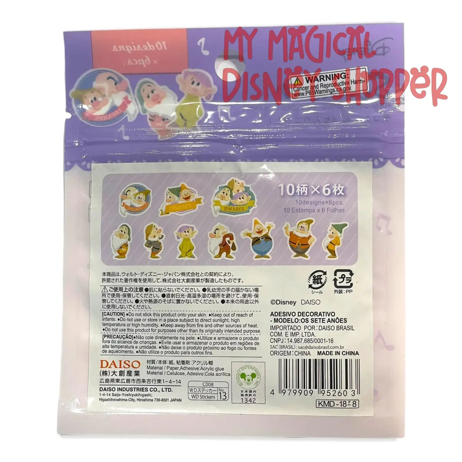Decorate your scrapbook or favorite paper craft with our licensed Seven Dwarfs Mini Stickers. Includes 10 designs with 6 pieces of each. Total of 60 stickers.