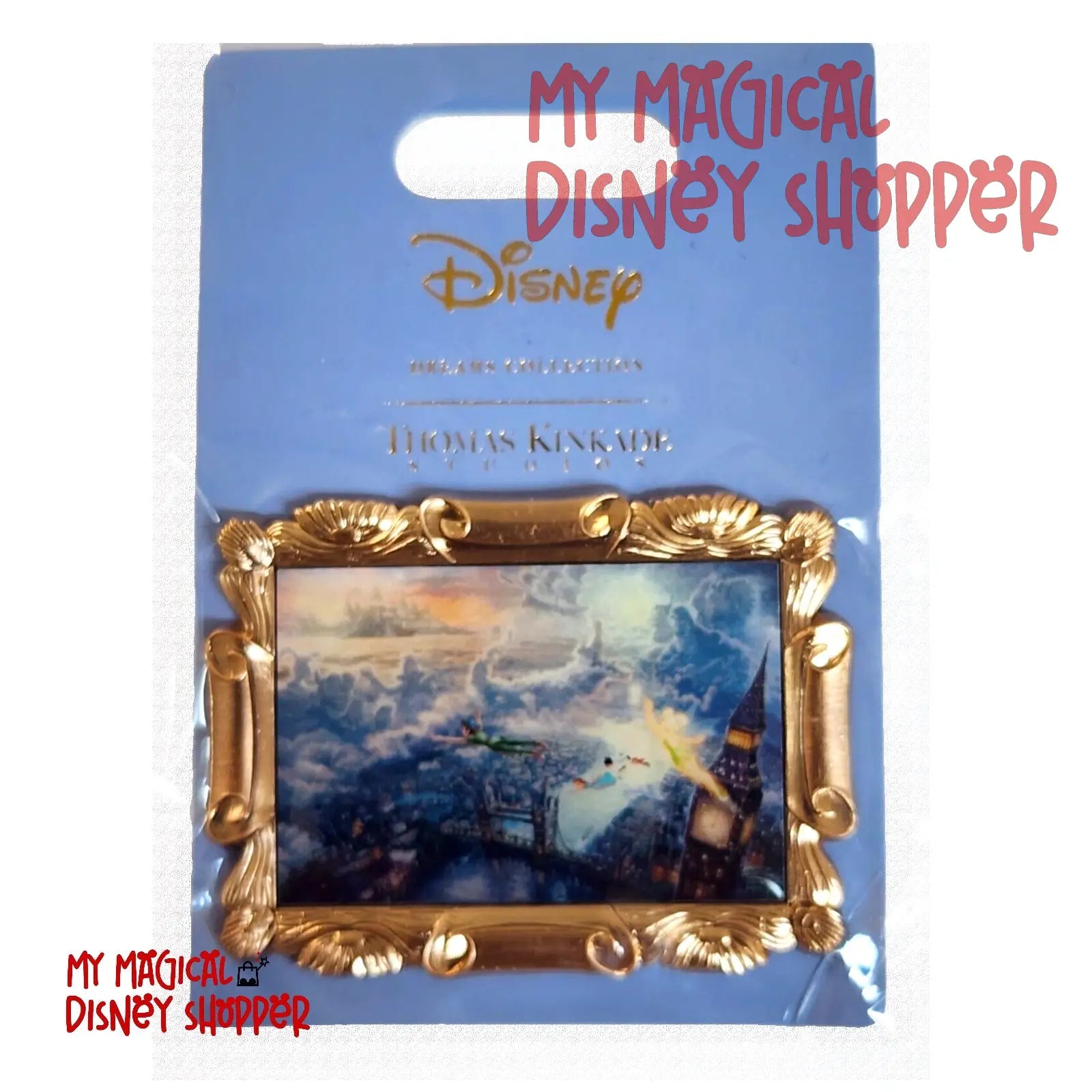 Enjoy the beautiful art work of Thomas Kinkade. This Peter Pan pin features a screen print of the actual Thomas Kinkade Disney painting! Limited Edition size of 900.