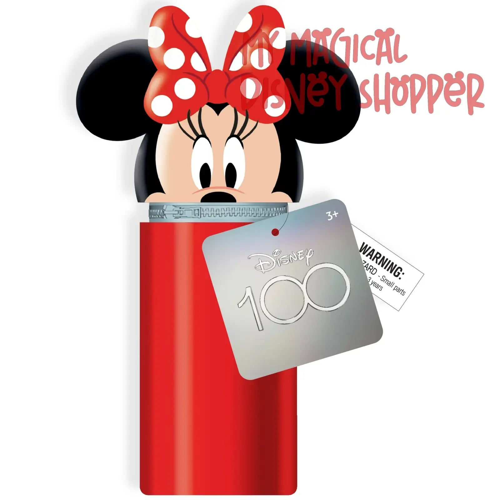 Celebrate Disney's 100 years of wonder with the Disney 100 Minnie Mouse Silicone Pencil Case. This pencil case is the perfect size for pencils and other writing utensils. The top of the pencil case is Minnie Mouse's head with a zipper underneath. Overall dimensions are 2.5-Inches Diameter by 6.5-Inches High. This product is designed for children 3 years of age and older. Unisex.