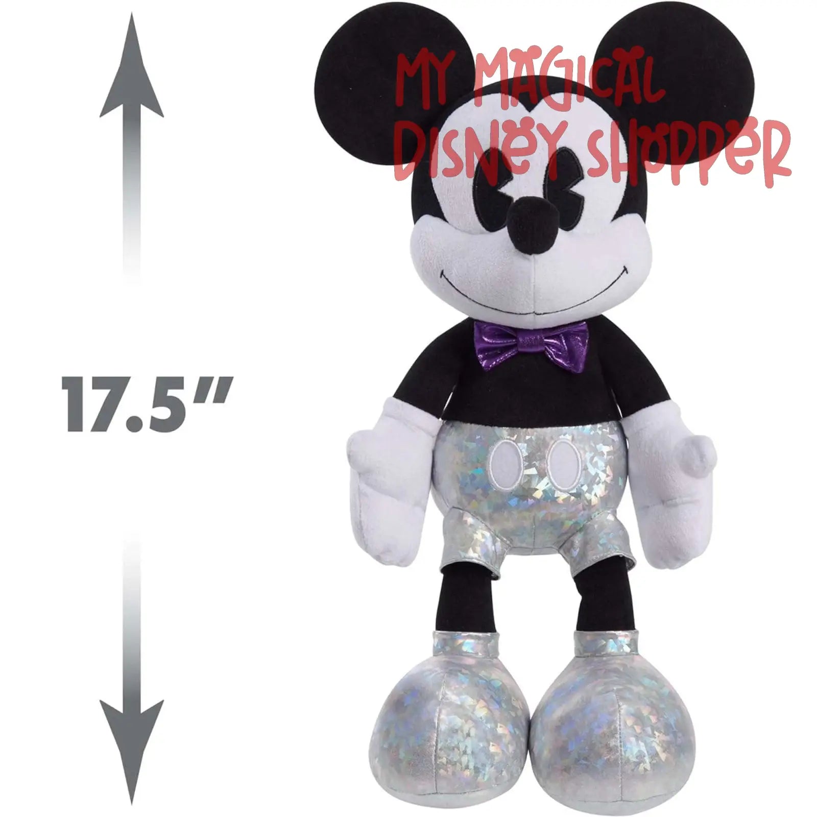 Celebrate a lifetime of memories with the Disney100 Years of Wonder Minnie Mouse Jumbo Plush. This collection honors a century of magical storytelling by the Walt Disney Company. Minnie Mouse, who first appeared on the silver screen in 1928, comes well prepared for the celebration in her stylish, platinum best. From the top of her shimmery bow to her special Disney100 Years of Wonder foot badge, cuddly plush comes dressed in a gorgeous platinum dress with purple belt and button, silvery shoes with purple bow details, signature white gloves, and classic embroidered detailing. Minnie Mouse, along with the Mickey Mouse. These once-in-a-lifetime keepsakes make timely holiday, birthday, and “just because” gifts for fans and kids ages 2 years and up.