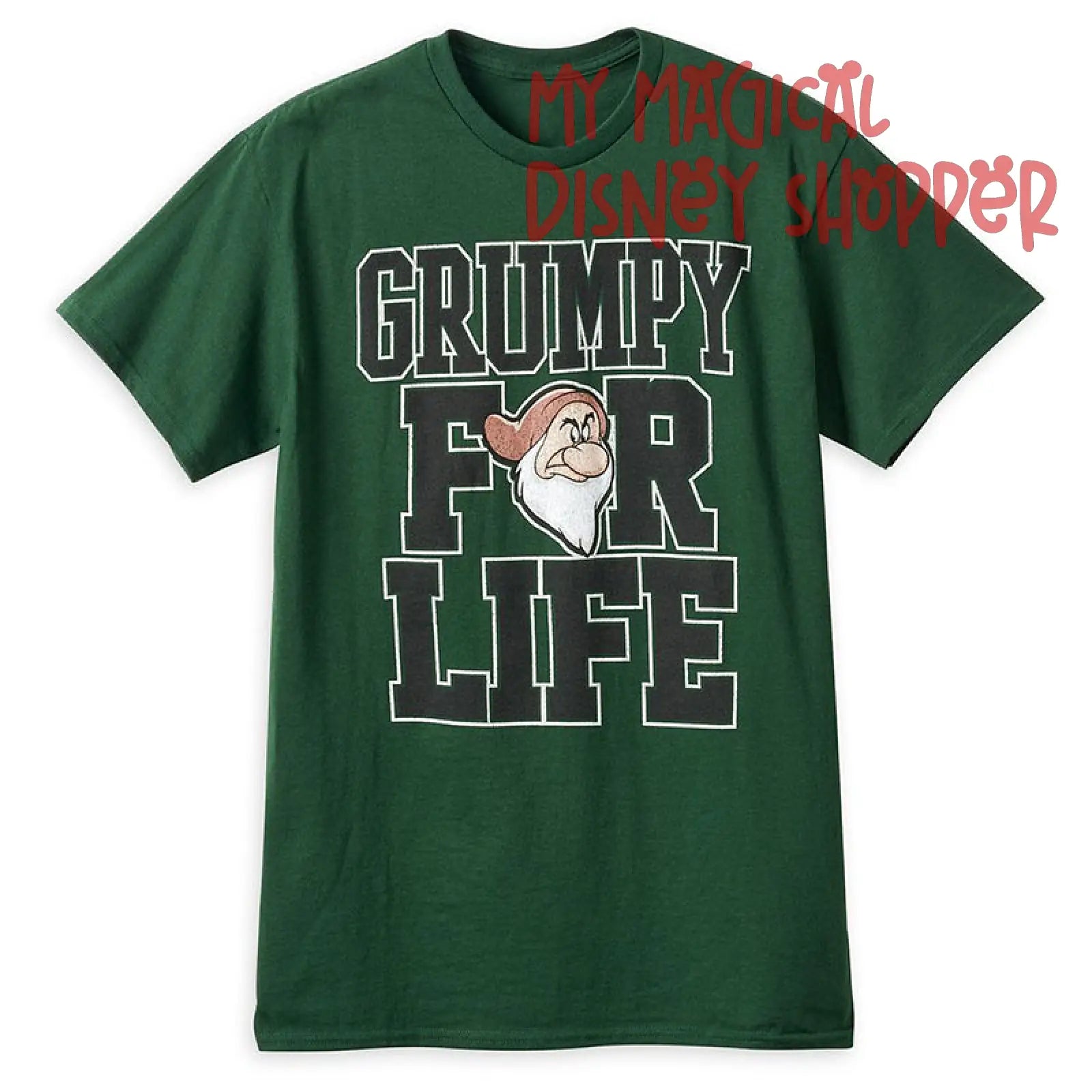 If you're going to be ''Grumpy for life'' warn the world by wearing this all-cotton tee featuring the downbeat Dwarf himself in a bold print design.