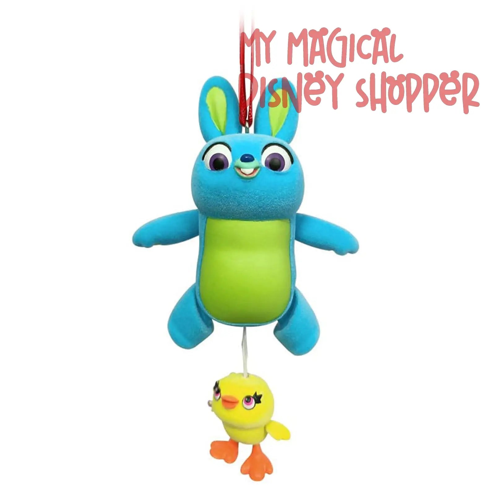 Those inseparable colorful carousel companions Ducky and Bunny are joined together in this articulated figural ornament. Pull down on Ducky to move Bunny's arms and legs up in this fun holiday decoration inspired by Toy Story 4.