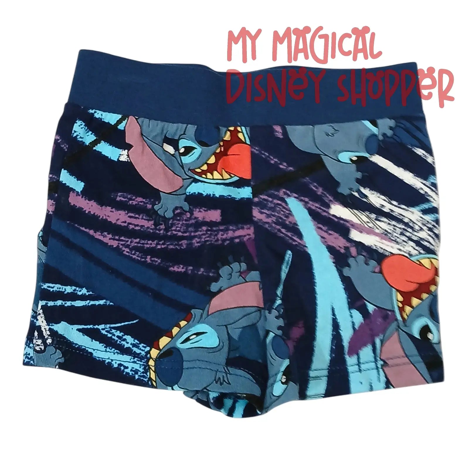 This cozy set includes a soft, short-sleeve top with shoulder snaps for easy changing and matching shorts with a comfy elastic waistband. The playful allover print showcases Stitch in fun, colorful poses against a vibrant blue and purple background — perfect for playtime, nap time, or photo-worthy moments.