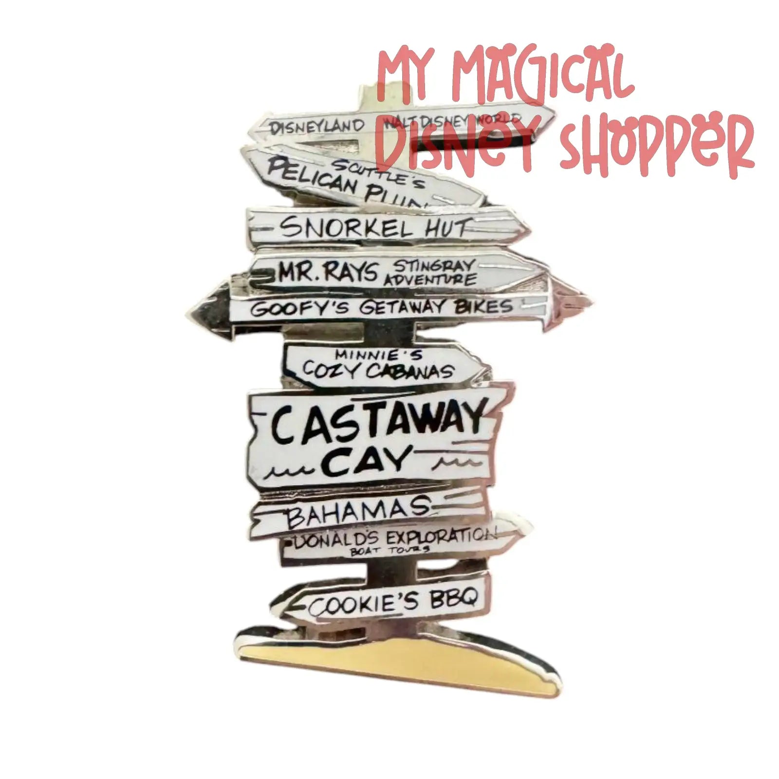 🧭 Features a signpost with playful arrows to ports like Castaway Cay, Nassau, and more