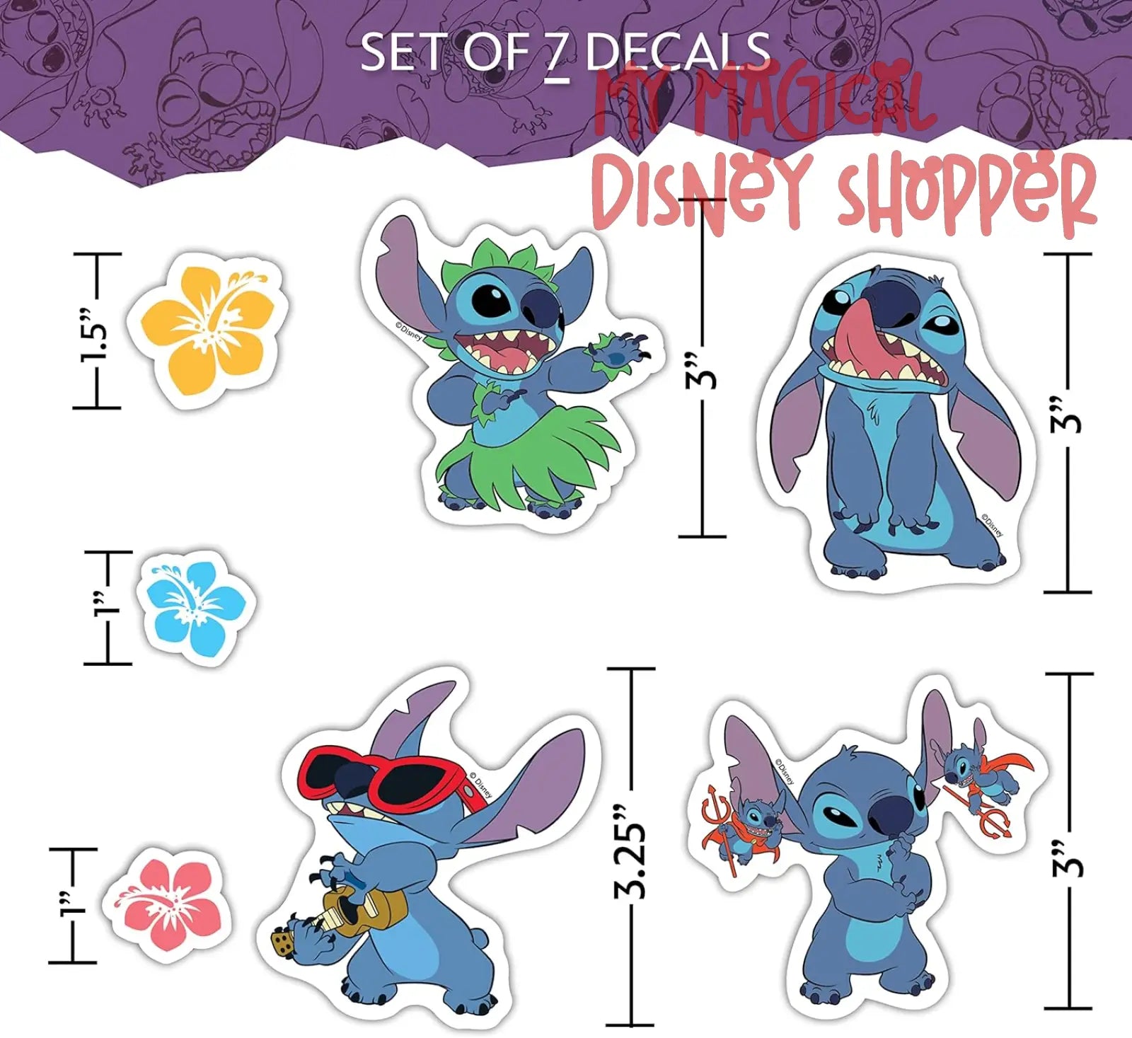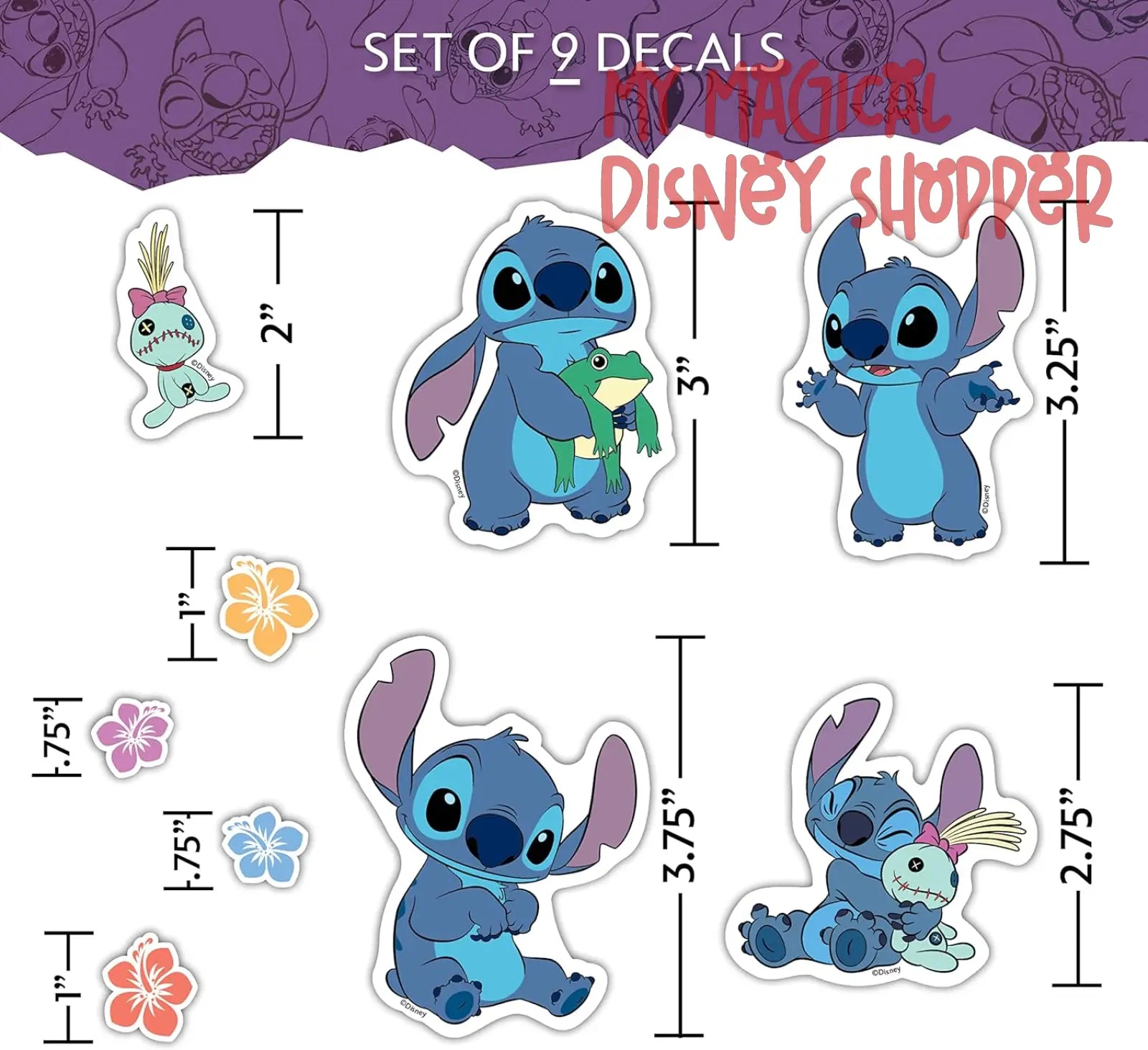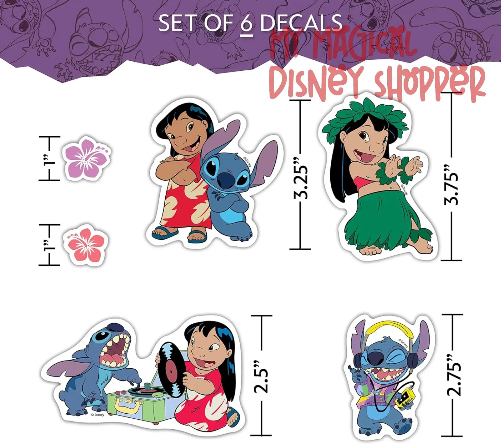 Set of 22 Lilo and Stitch Decals.