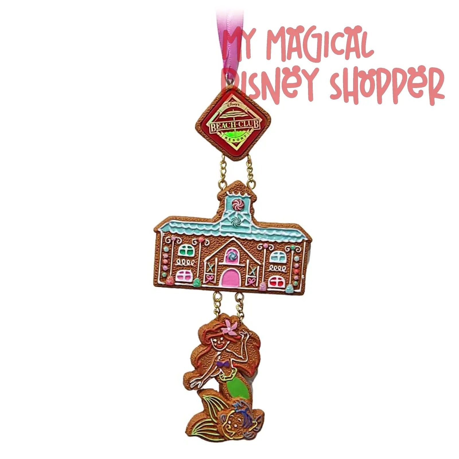 Add some festive cheer to your tree with these Gingerbread House ornaments created for each of the 2023 Holiday season gingerbread displays at the Walt Disney World Resort. This ornament was created for Disney's Beach Club Gingerbread House and features Gingerbread Ariel and Flounder.