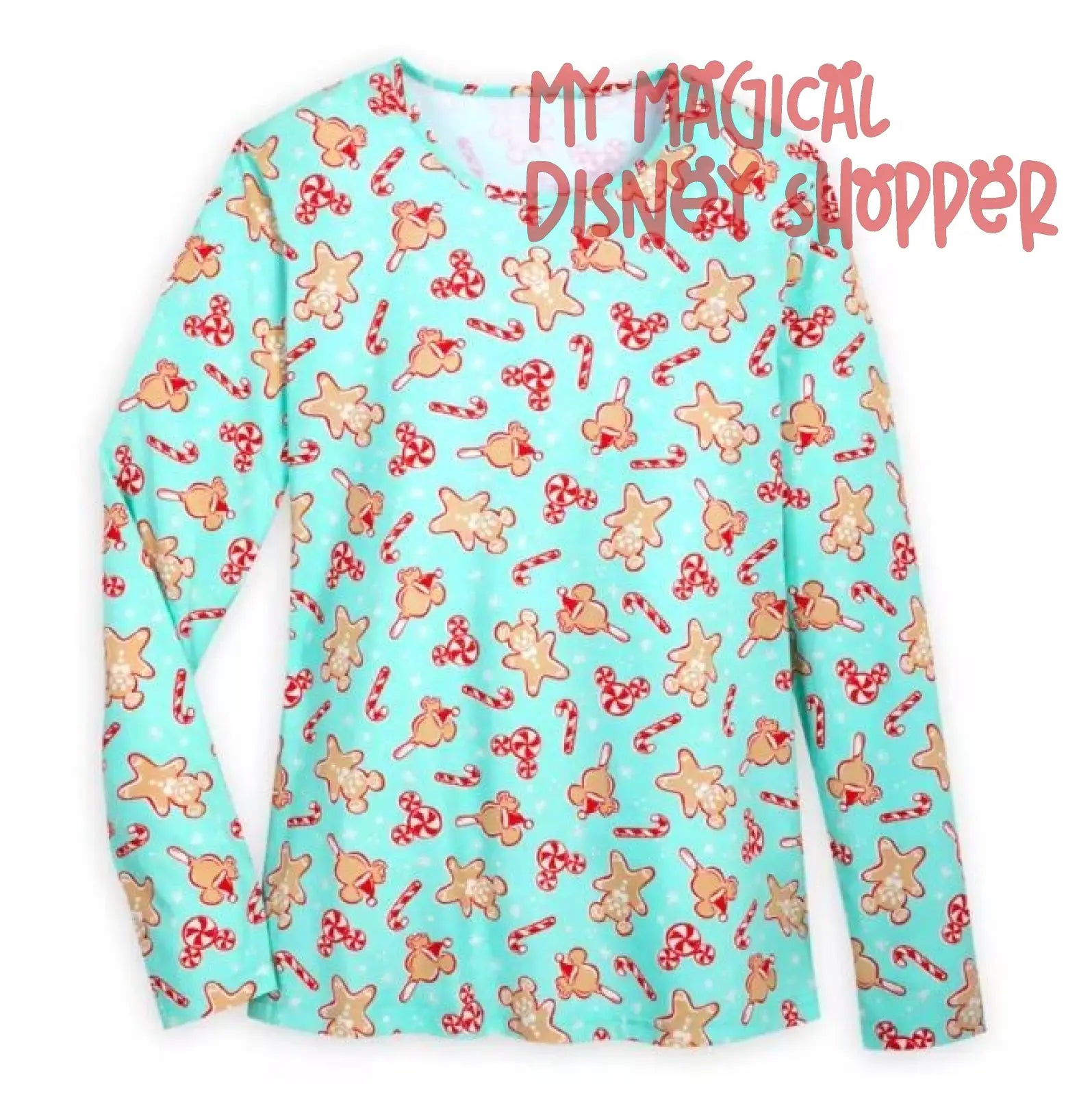 Get cozy for the season with this sweet holiday sleepwear set from Disney Parks! Featuring a festive allover print of Mickey-shaped gingerbread cookies, candy canes, and peppermint lollipops on a cheerful aqua background, this comfy two-piece set is perfect for winter nights and holiday mornings. With long sleeves and full-length pants, you’ll stay warm while showing off your Disney holiday spirit.
