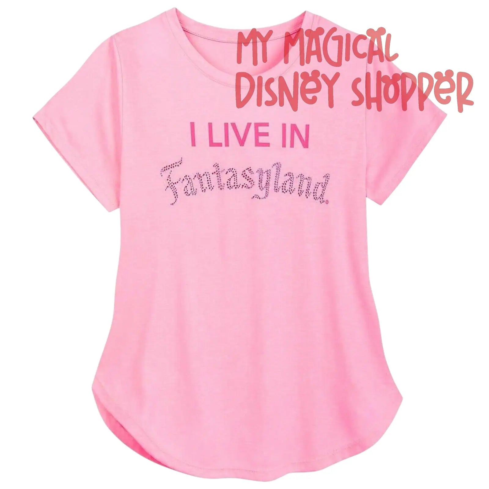 Disney Parks Pink "I Live in Fantasyland" Rhinestone Shirt - Adult Womens XS