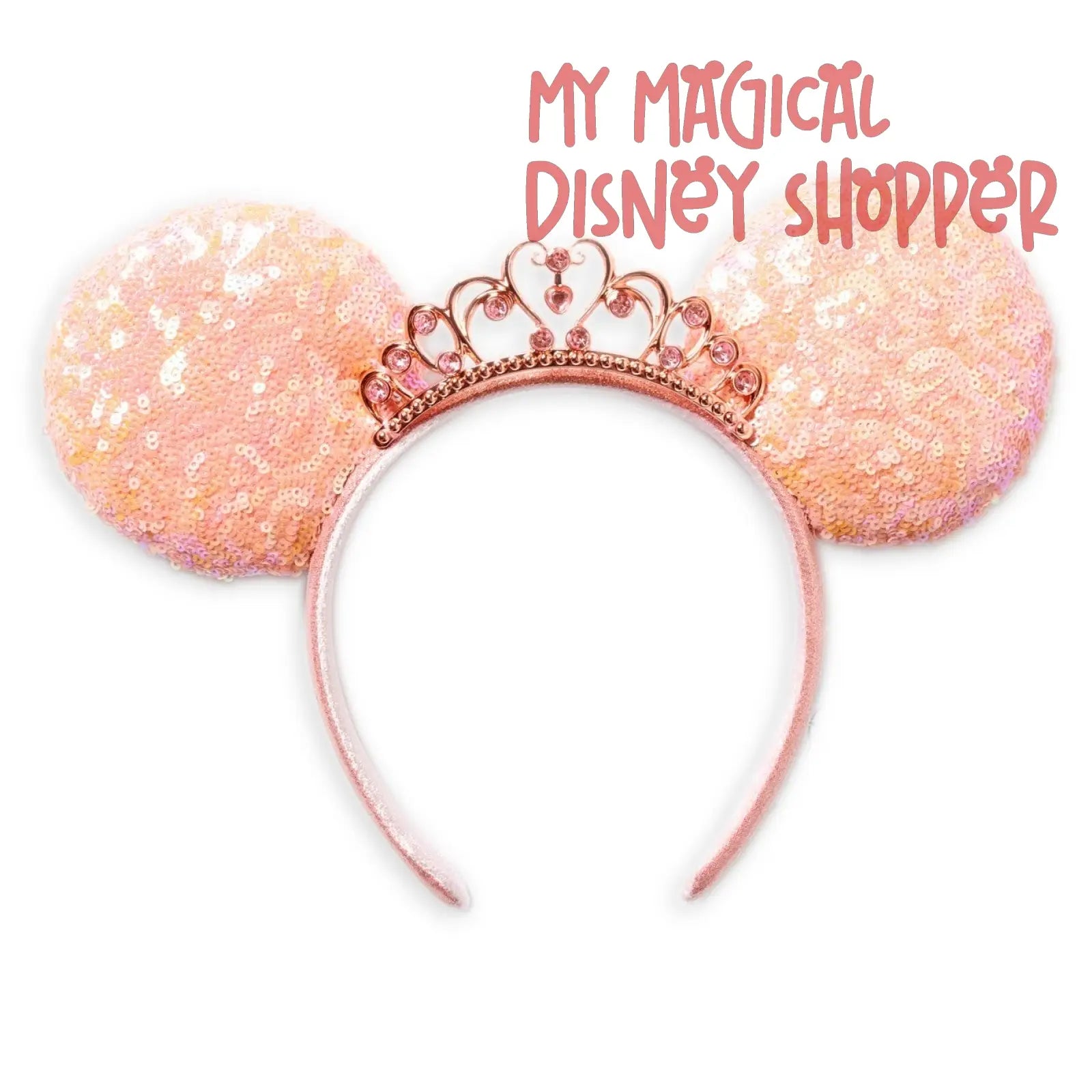 Dreams dare to come true when wearing this dazzling Disney Princess Ear Headband adorned with coral sequins and a shimmering tiara set with faceted gems.