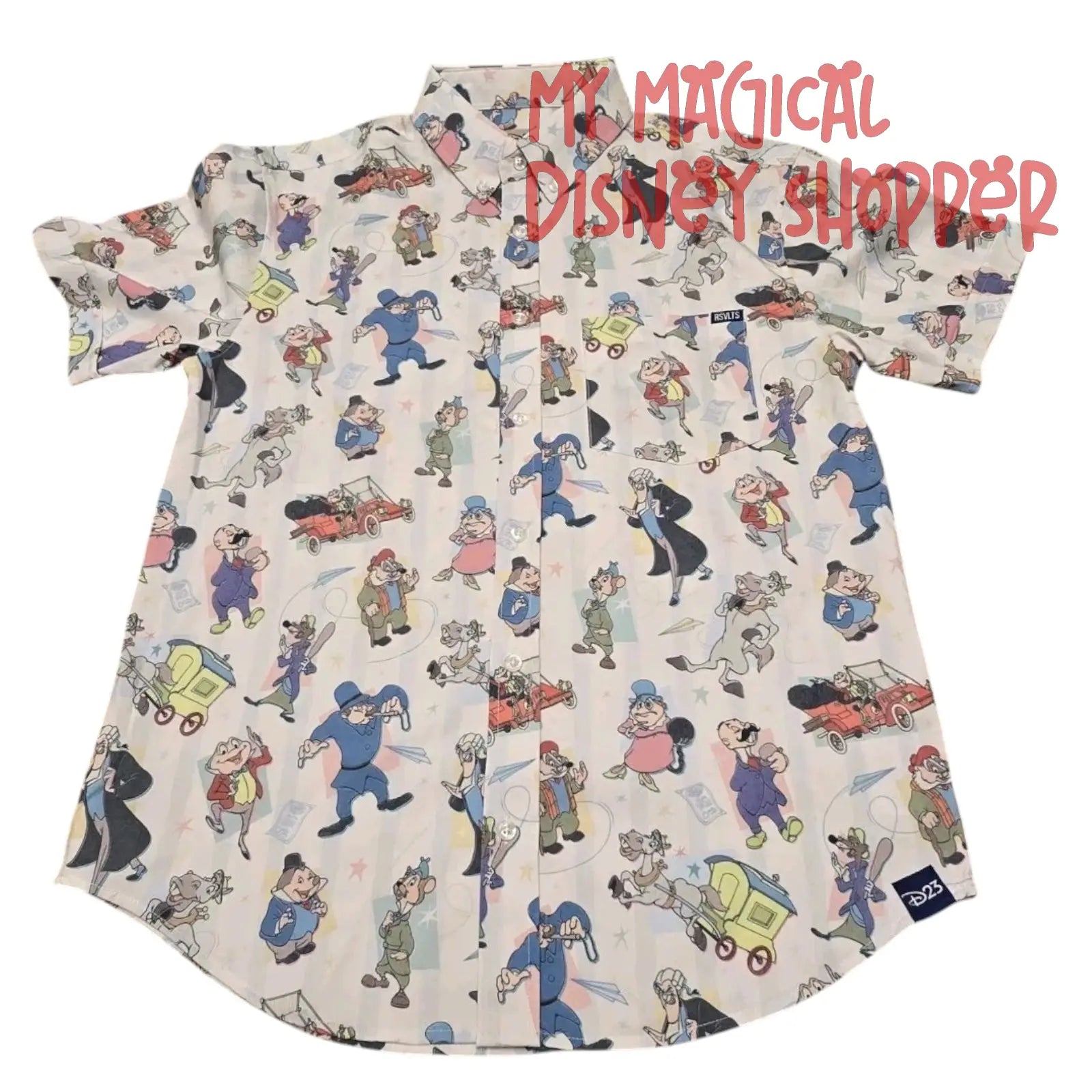 The allover print captures scenes of Mr. Toad’s thrilling motorcar escapades, blending bold colors with playful vintage-inspired artwork. Made with RSVLTS’ signature KUNUFLEX™ stretch fabric, this shirt is as soft, breathable, and comfortable as it is adventurous — perfect for park days, casual outings, or adding a dash of Disney nostalgia to your wardrobe.