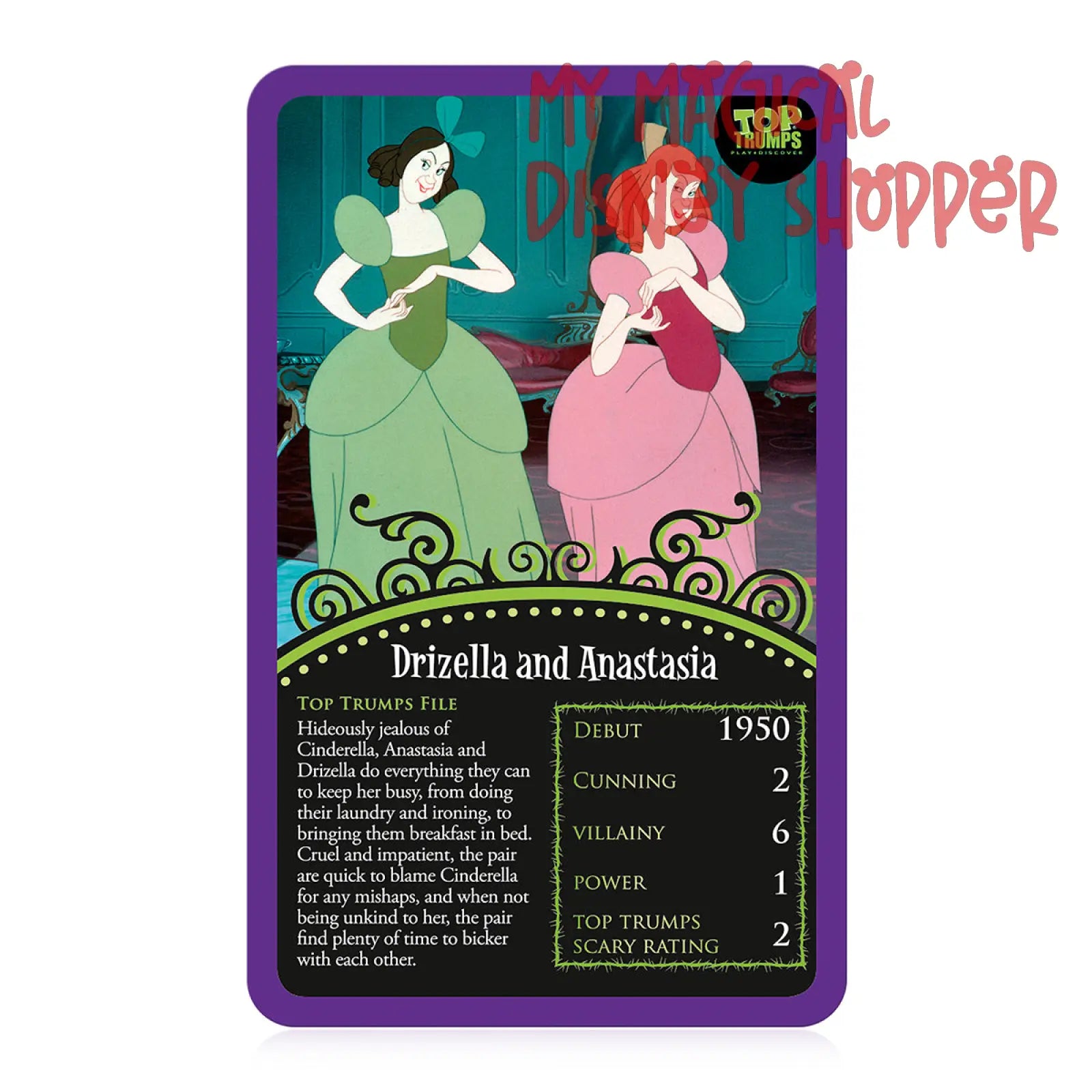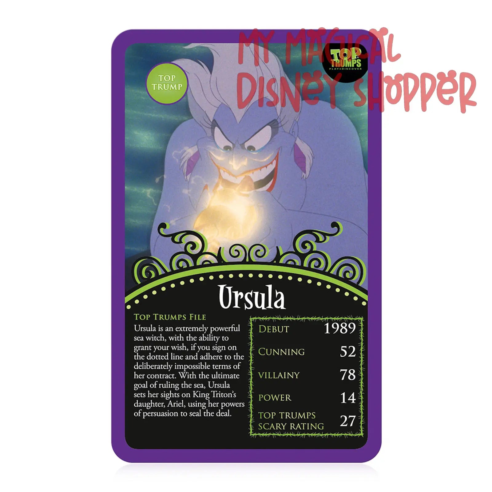 Channel your inner wicked streak with this frightfully good TOP TRUMPS pack starring 30 of the most diabolical Disney Villains ever to grace the big screen. From the calculating Maleficent to the sea witch Ursula, royal vizier Jafar and the ruthless Cruella De Vil, discover precisely what makes these characters tick. Pick from categories including Cunning, Villainy and Power and try to beat your opponents’ stats.