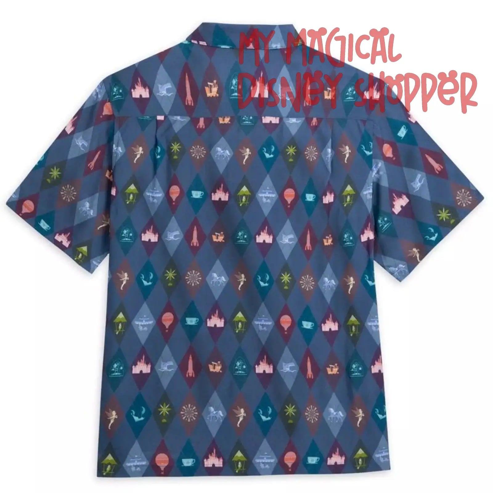 Step into a storybook of iconic Disney moments with this beautifully crafted woven shirt from the Disneyland Artist Series, brought to life by creators Ashley Eckstein and Ashley Taylor. With a sophisticated diamond pattern and subtle pastel icons, this shirt is a wearable love letter to the magic of the parks.
