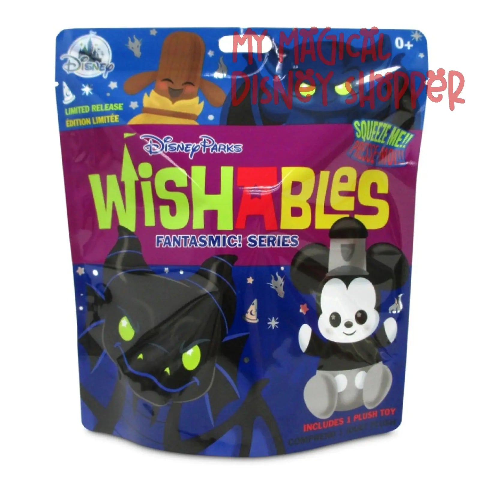 Cast a spell of delight on your collection with our Disney Parks Wishables Fantasmic! Series plush. Each blind bag includes one of four soft characters from the nighttime spectacular, but you won't know which you have until you open the bag!