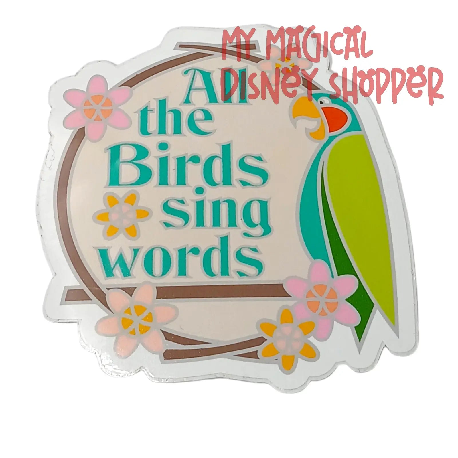 With the iconic phrase “All the birds sing words” and colorful vintage vibes, this 2–3" sticker is perfect for park nostalgia lovers and Dole Whip daydreamers alike.