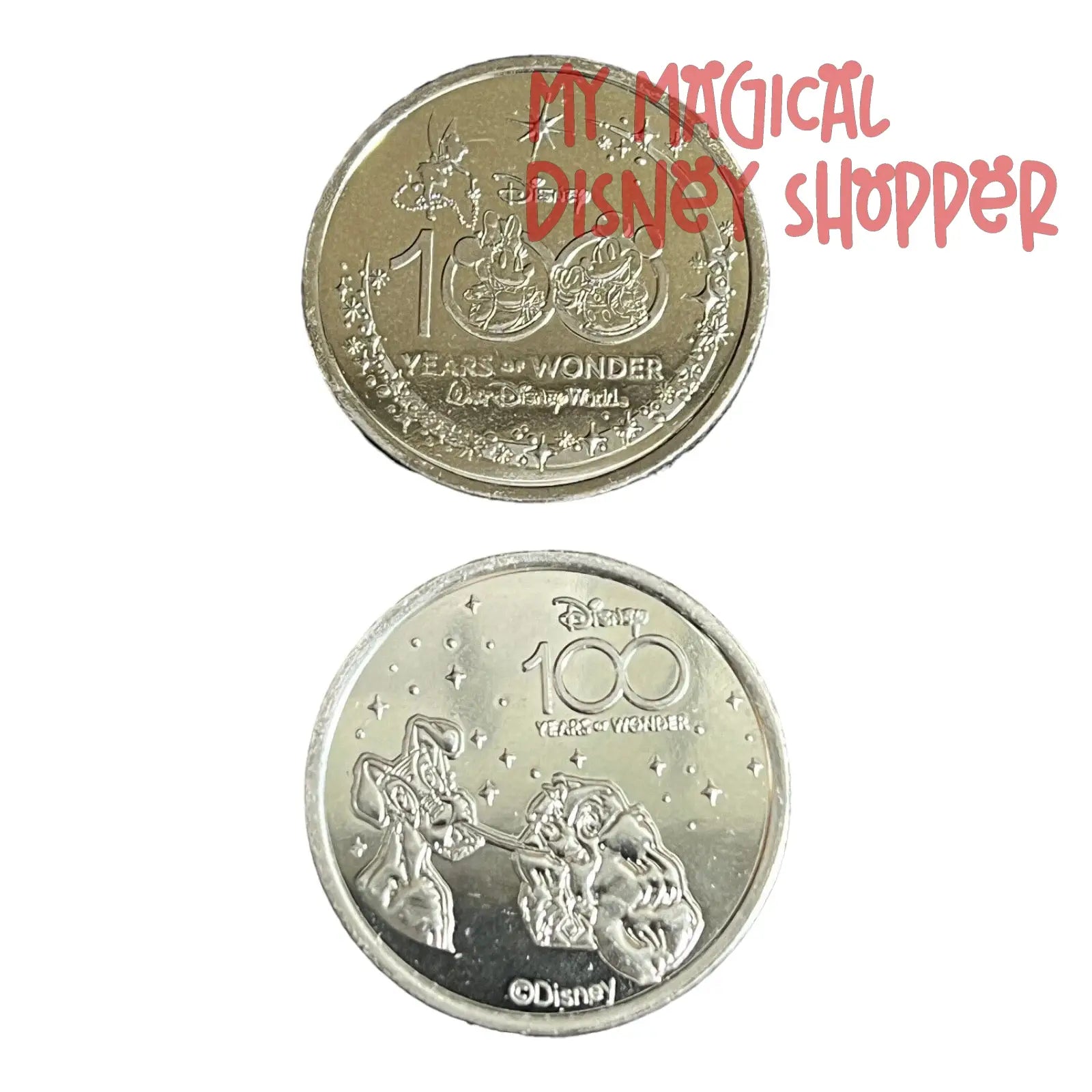 Introducing the Silver Colored Lady and the Tramp Medallion, a timeless tribute to Disney's 100 Year Anniversary at Walt Disney World. Meticulously crafted, this exquisite medallion beautifully depicts the iconic moment when Lady and Tramp share a spaghetti dinner, captured in stunning detail and finished in a radiant silver hue that exudes elegance and nostalgia. Their endearing love story has captured hearts for generations, symbolizing the magic of finding love in unexpected places. Whether worn as a cherished keepsake or displayed as a collector's item, this medallion is a testament to a century of enchanting tales and unforgettable characters. Elevate your Disney memorabilia collection with this heartwarming piece that pays homage to a century of cherished memories and boundless imagination.