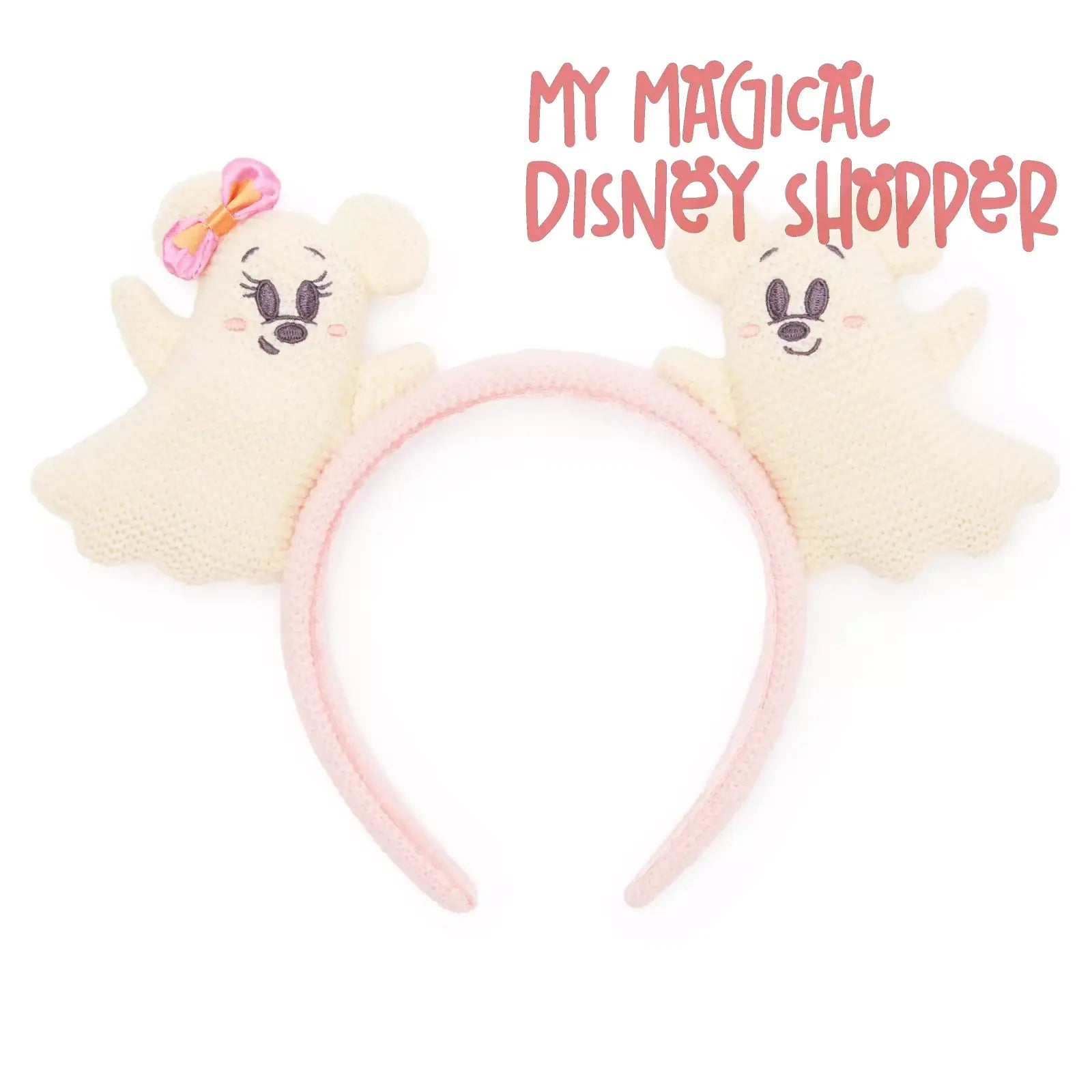 As sweet as candy, Mickey and Minnie Mouse take the shape of crocheted ghosts for the happiest haunting season. With embroidered features, they form the padded ears on this headband that is simply boo-tiful!
