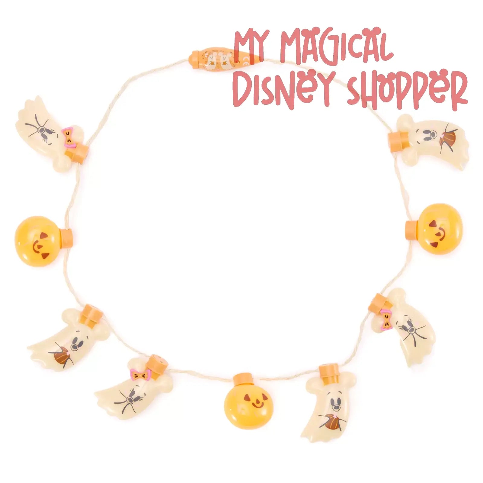 Give your Halloween look a glow up with this Mickey and Minnie light-up necklace. The pair appears as adorable ghosts with three jack-o'-lanterns on this accessory that features six different light modes. A must for trick-or-treating and all season long, it's easy to see how much fun you'll have wearing it.