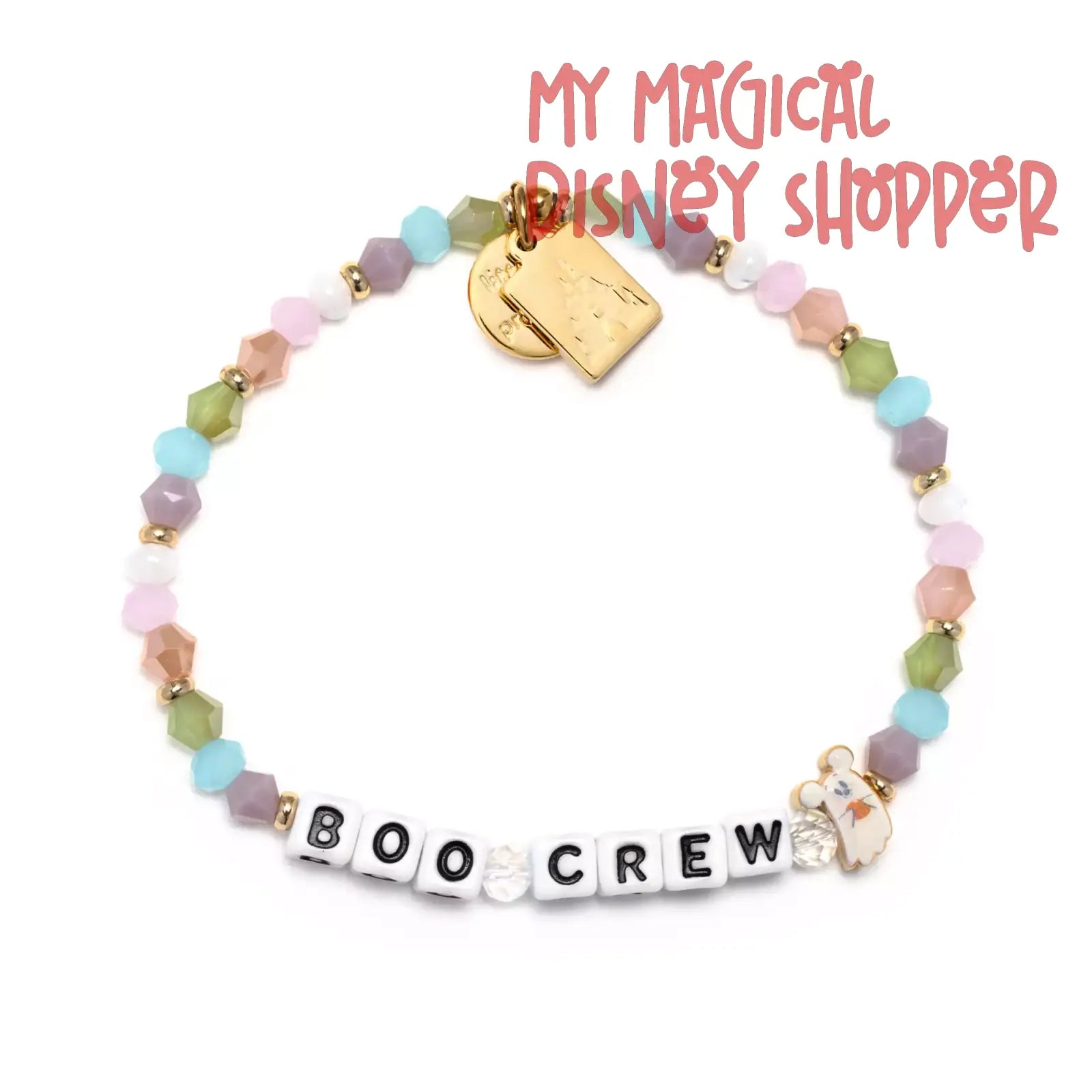 Check out what's boo in fashion! It's an adorable Mickey Mouse Cutie Ghost ''Boo Crew'' Bracelet by Little Words Project featuring crystal beads in a fresh palette of seasonal colors plus letter beads and an enamel cloissoné charm of Mickey reimagined as a sweet little ghost. Wear one and give one to everyone in your boo crew.