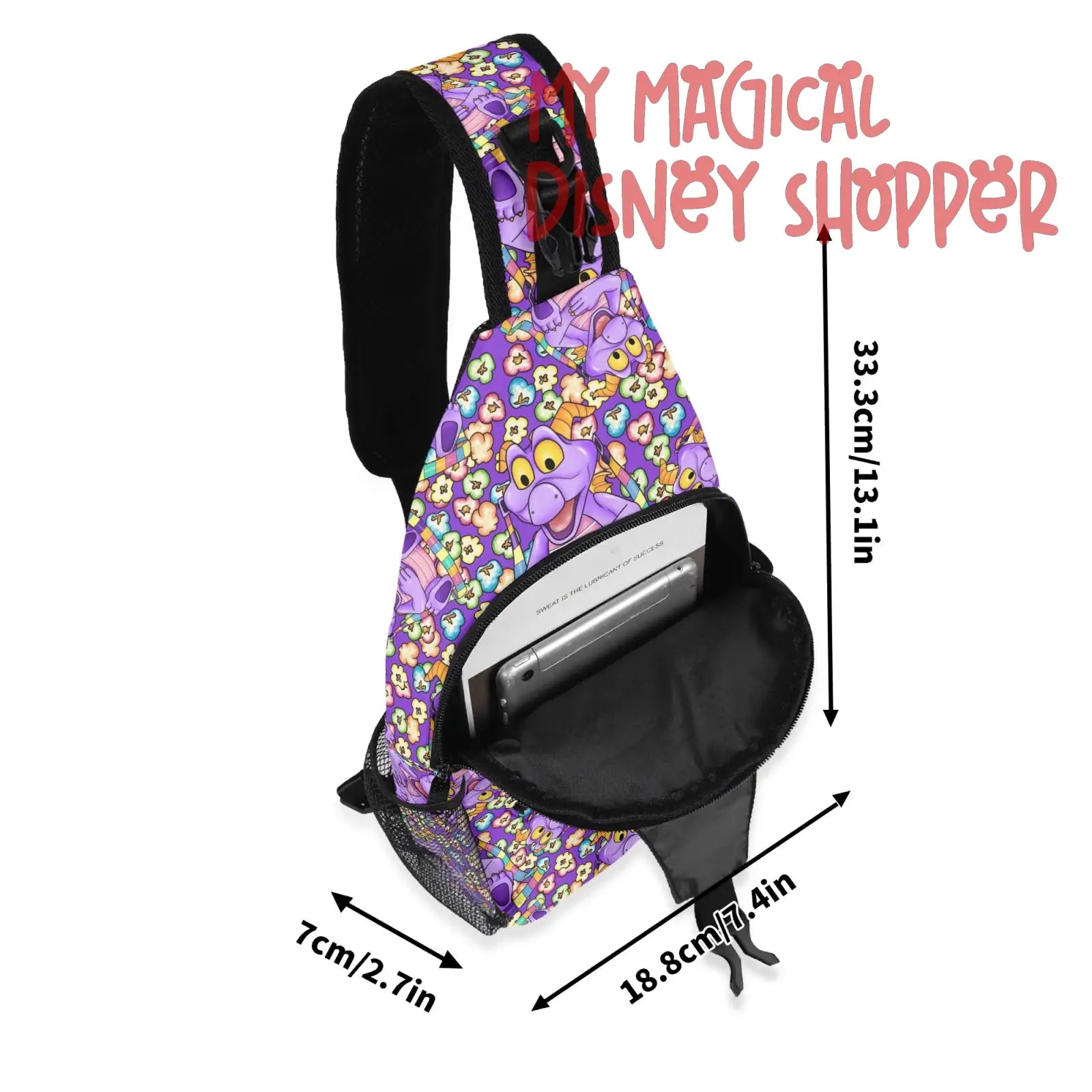 The One Little Spark Crossbody Bag is the perfect blend of practicality and playful charm, featuring Figment, the beloved dragon of imagination. Crafted with durable, lightweight materials, this bag offers ample space for essentials while maintaining a compact, stylish design. The adjustable strap ensures a comfortable fit, making it ideal for theme park visits, day trips, or everyday use. Its vibrant Figment-inspired design makes it a must-have accessory for EPCOT’s Festival of the Arts, celebrating creativity in style.