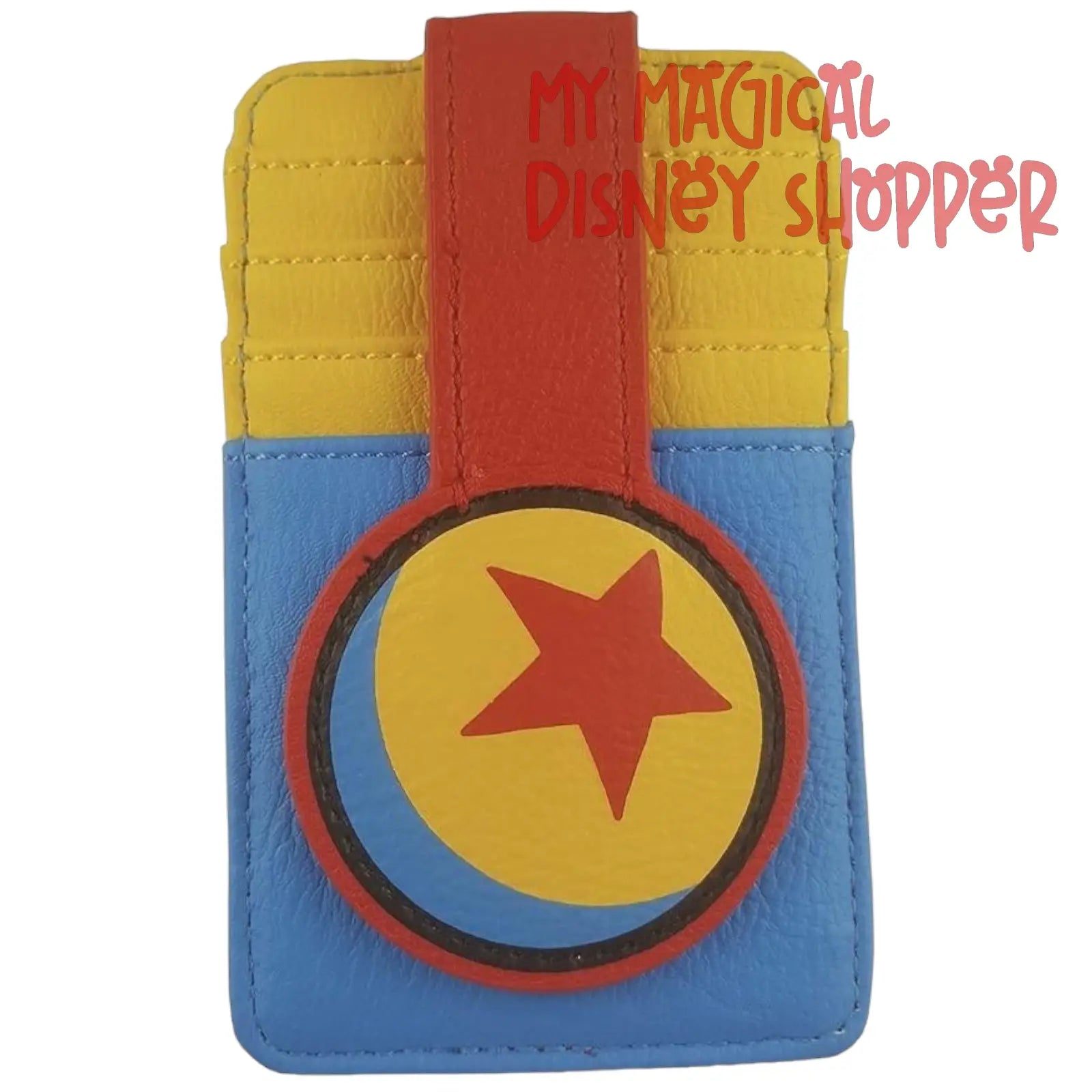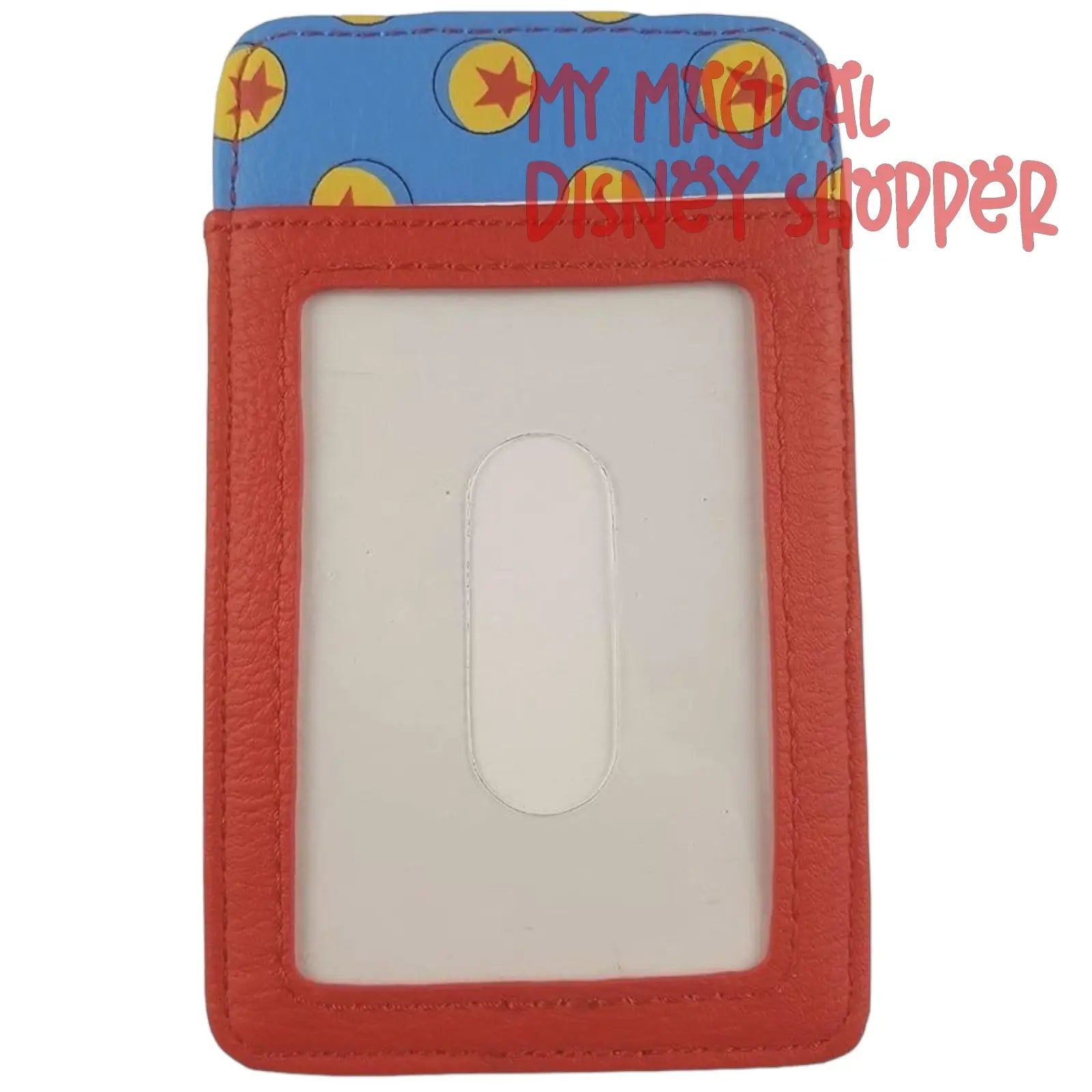 These fun Pixar design makes this stacked credit card holder one that will brighten every day. Fashioned in faux leather, it features a snap with a Pixar Ball to keep your cards safe, plus window ID holder.