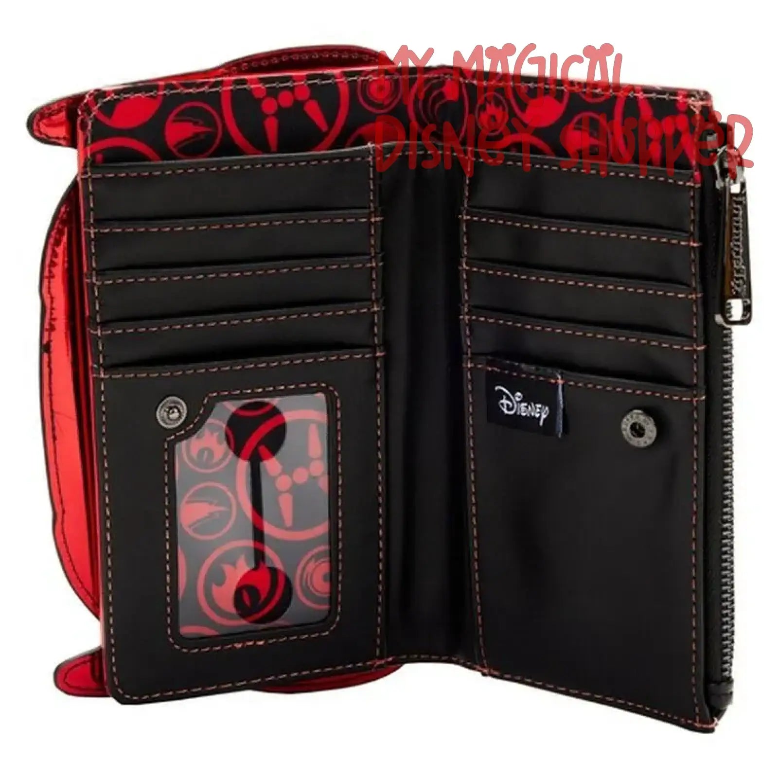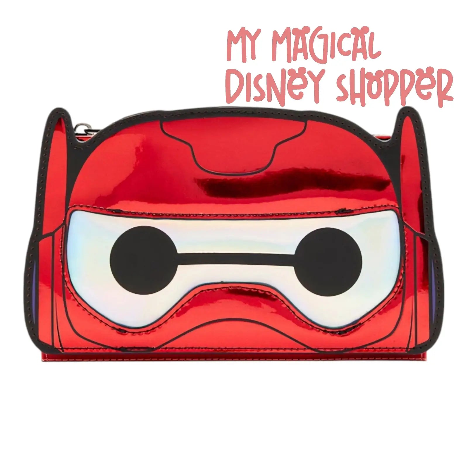 TheD23 Exclusive Funko Pop! by Loungefly Big Hero 6 Baymax Battle Mode Cosplay Wallet is made of holographic vegan leather (polyurethane). Wallet has sturdy metal hardware with snaps and zippers to keep everything in place. Additional features include applique, debossed, and printed details. Take note of the coordinating inside lining.