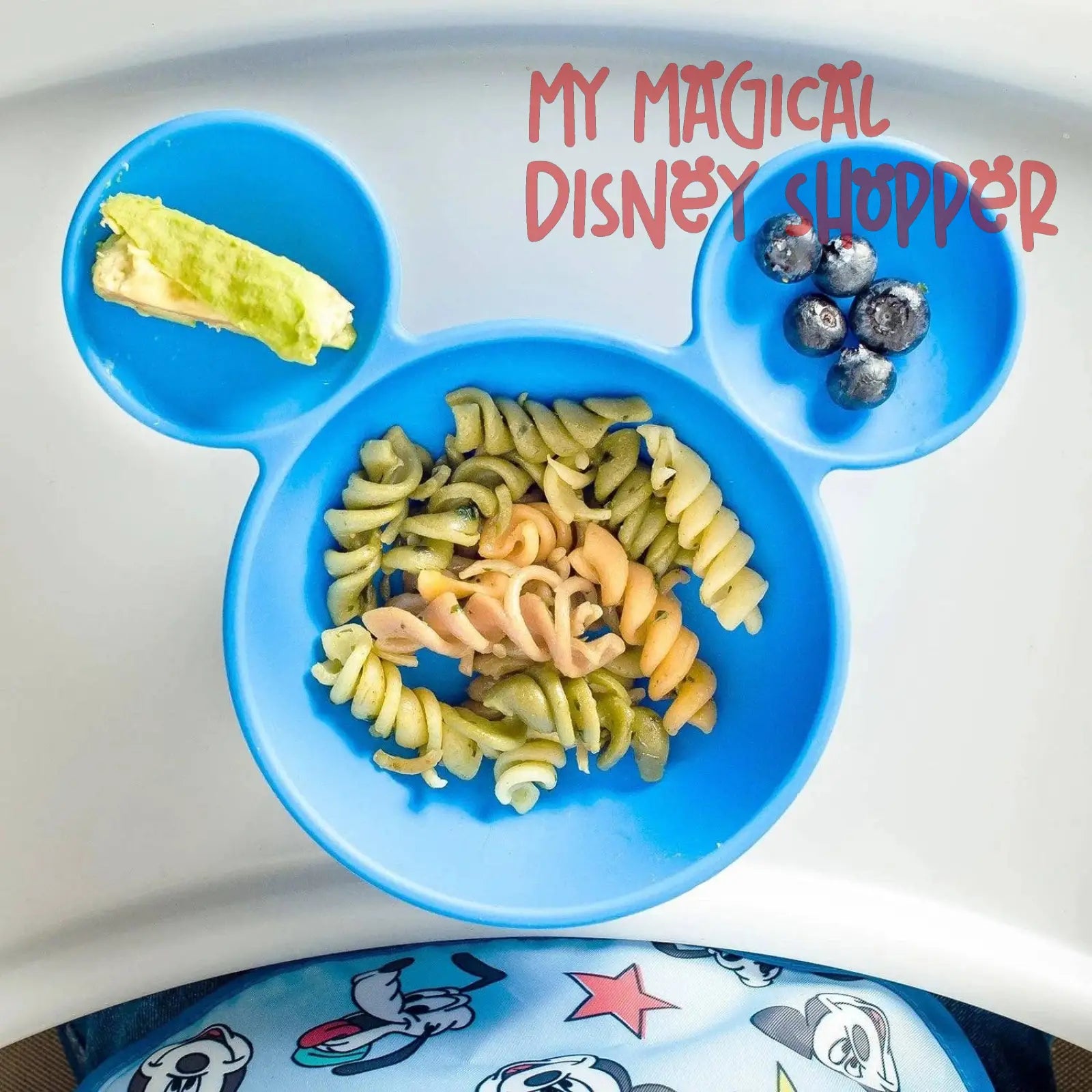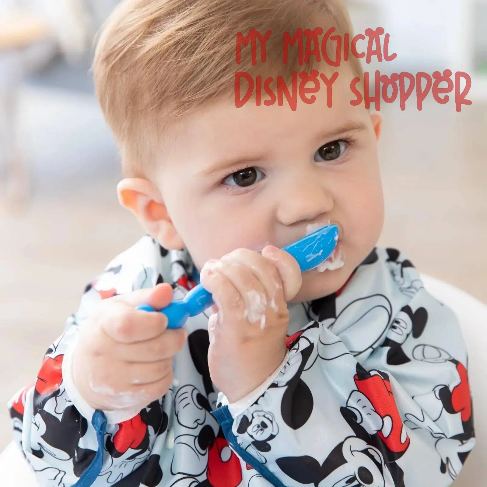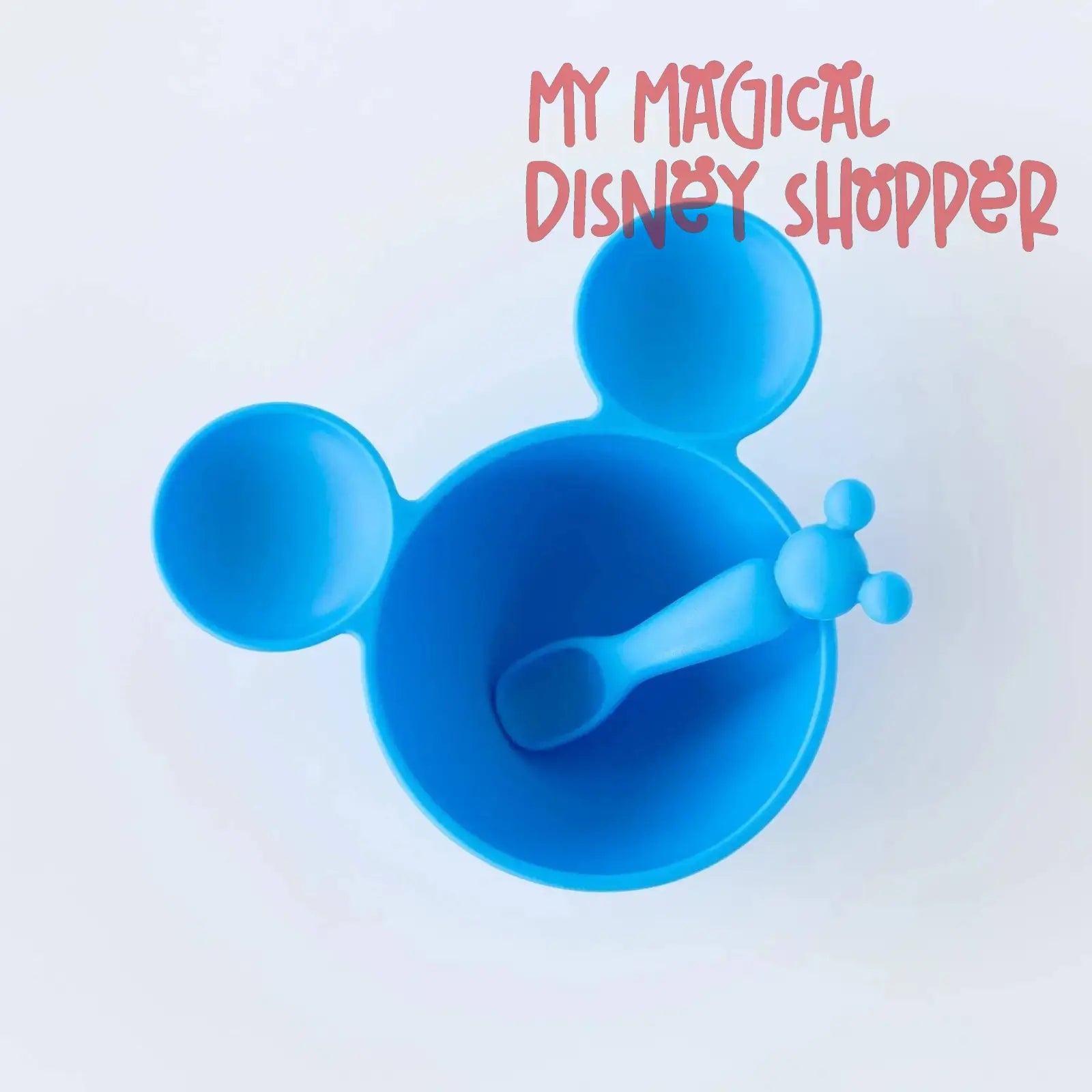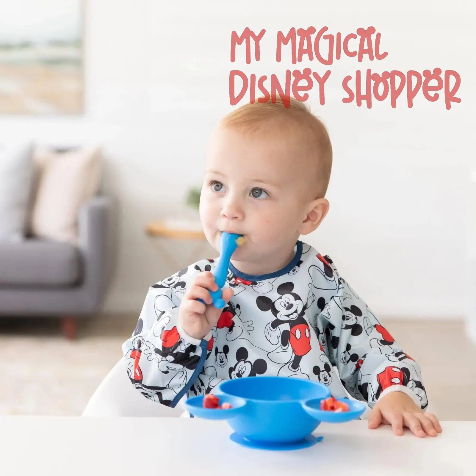 Our Mickey Mouse Silicone First Feeding Set helps you to transition your baby to self-feeding and introduce solid foods. The suction base keeps the bowl from sliding or flipping over. Great for use on highchair trays or tables. Made with 100% food-safe silicone, the spoon is soft and safe for teething babies.