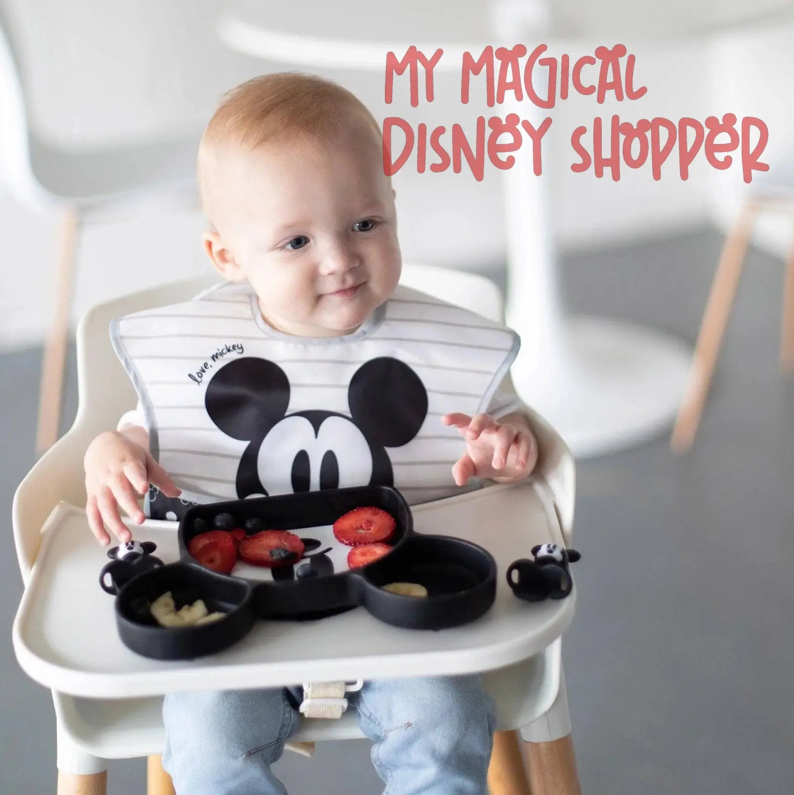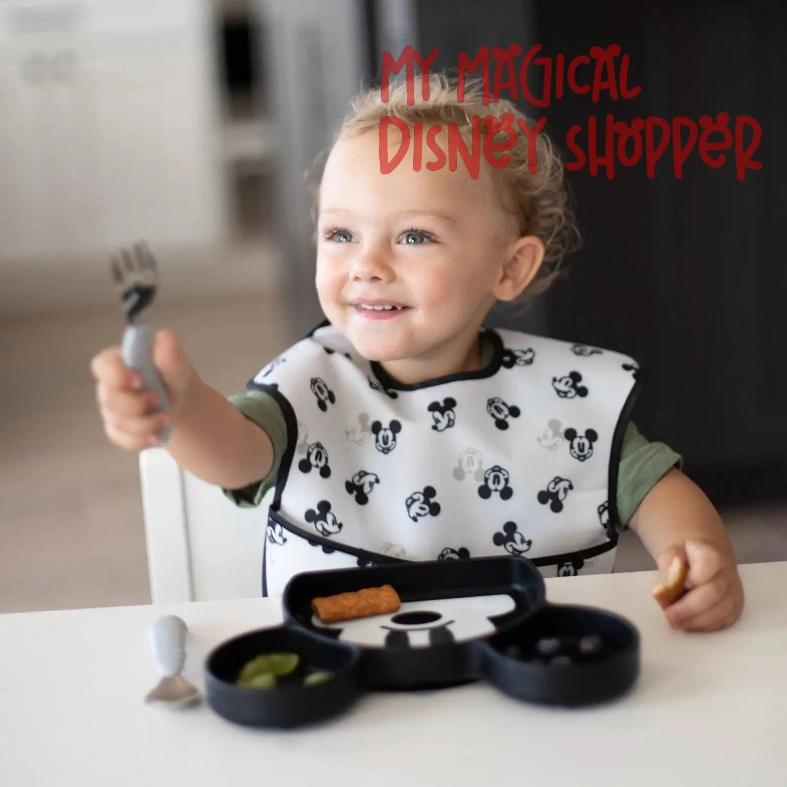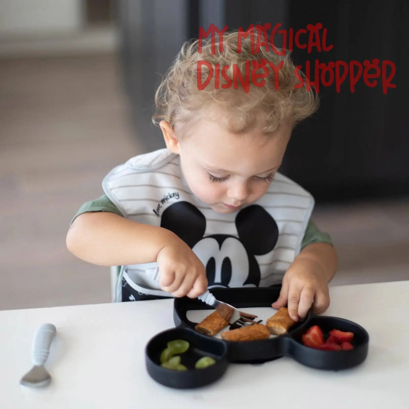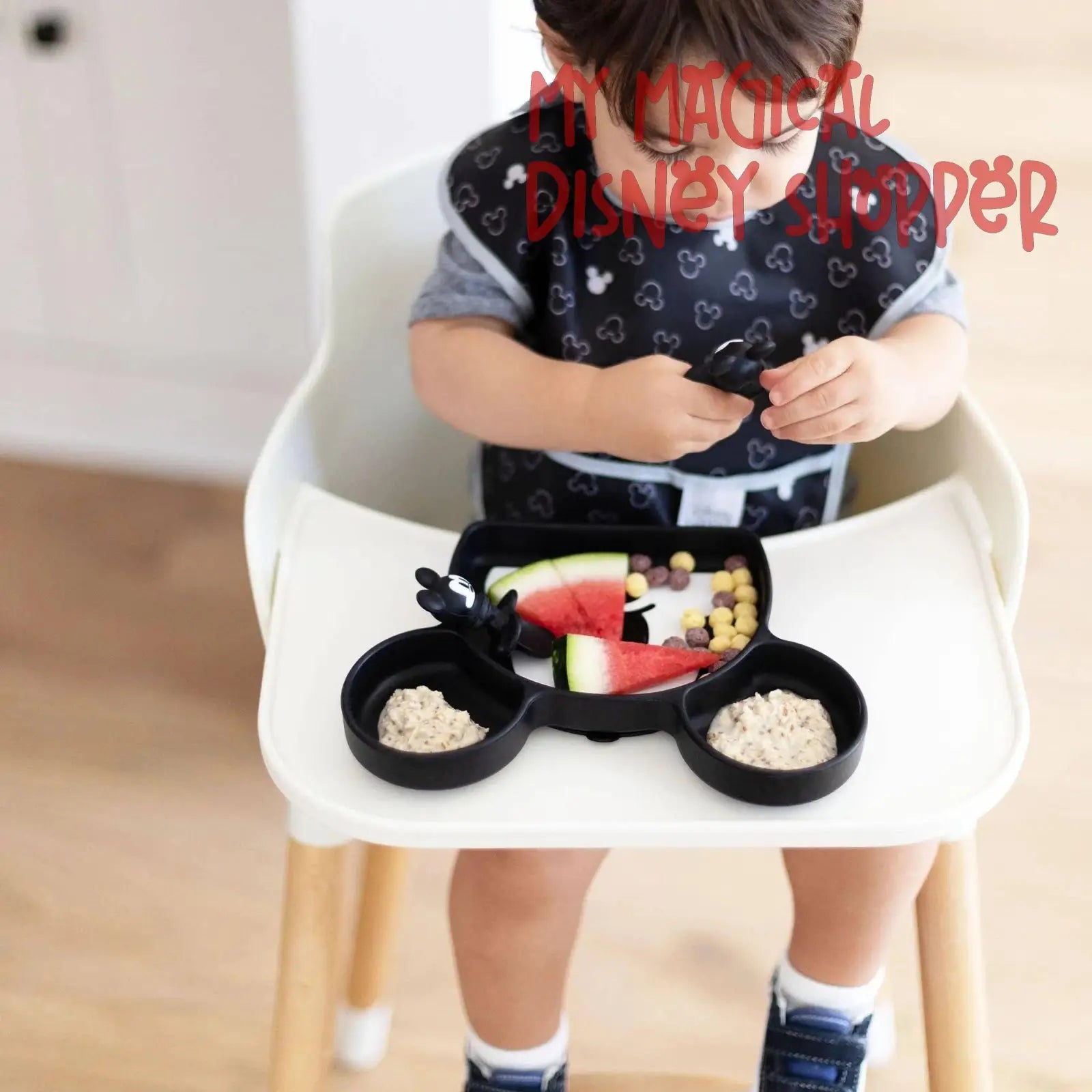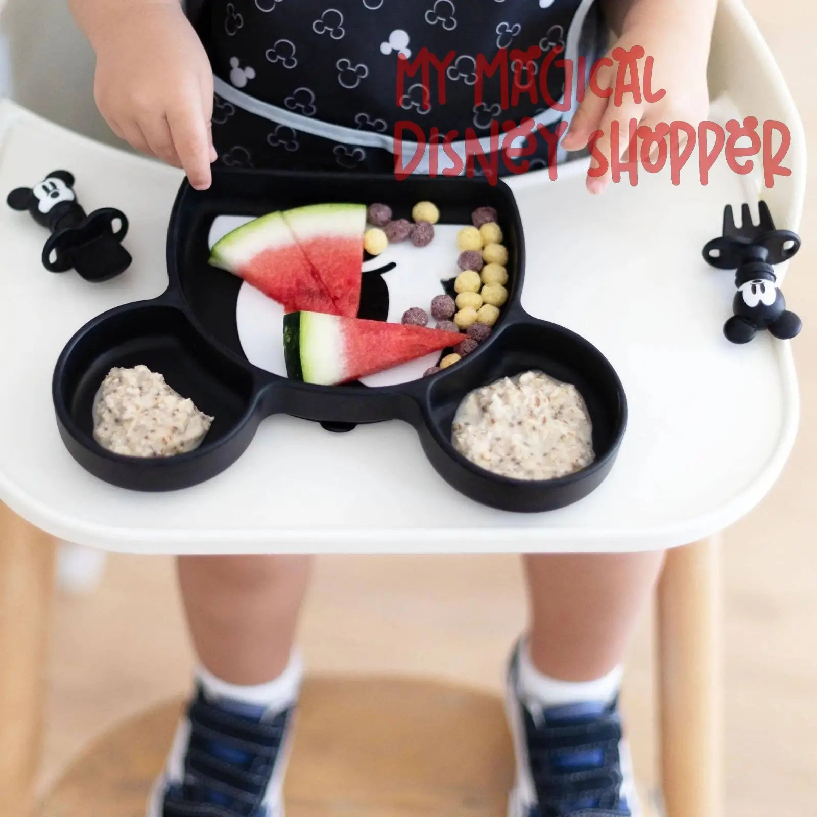Our Disney Mickey Mouse Dish is perfect for little ones learning to self-feed. This divided plate is perfectly sized for toddler portions. A strong suction base ensures the dish stays put – even with the most aggressive toddler! Great for use on highchair trays or tables. Silicone can withstand low and high temperatures, easily transitioning from the refrigerator or freezer to the oven or microwave. Made with 100% food-safe silicone that’s durable, stain and bacteria resistant. Measures approximately.