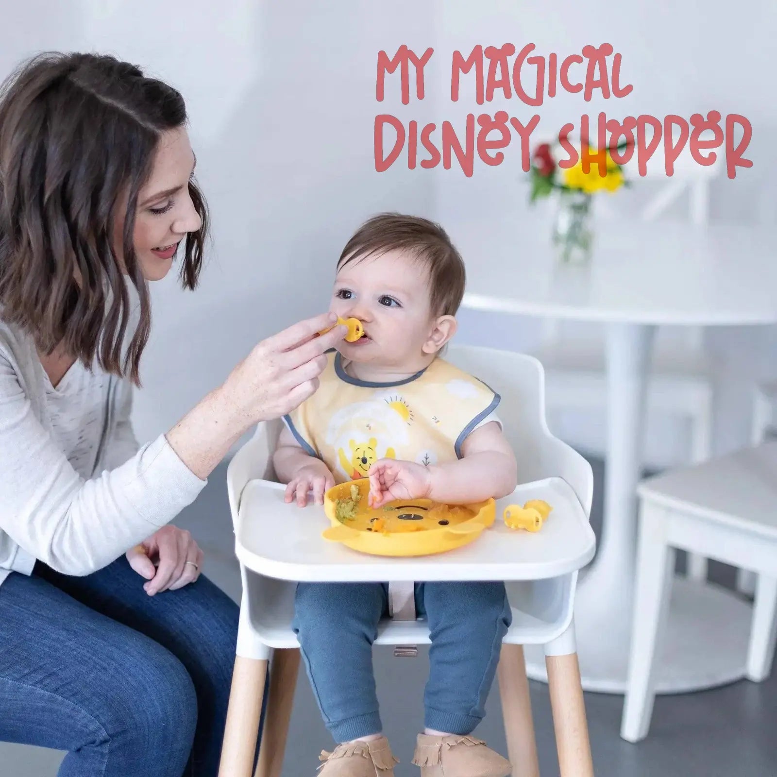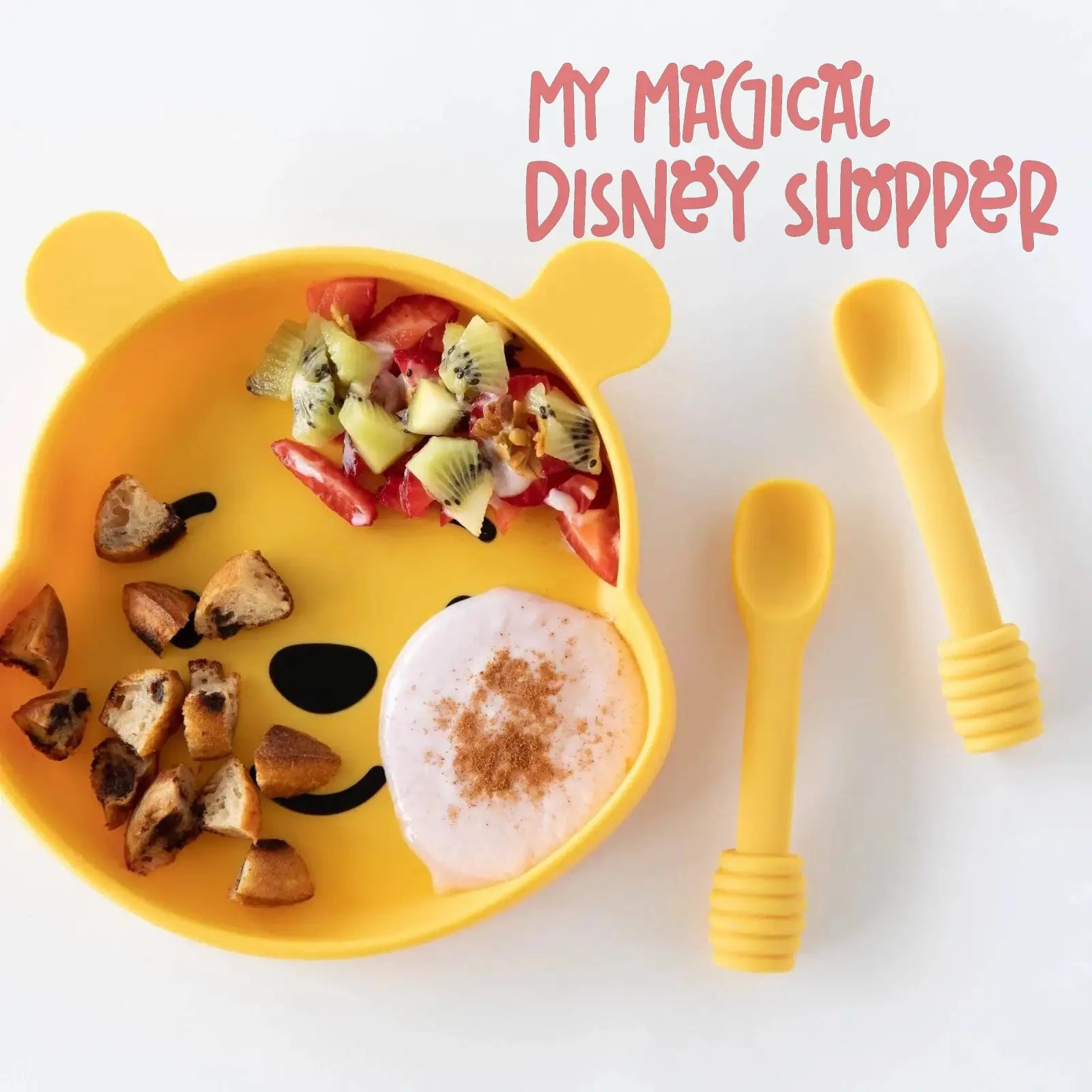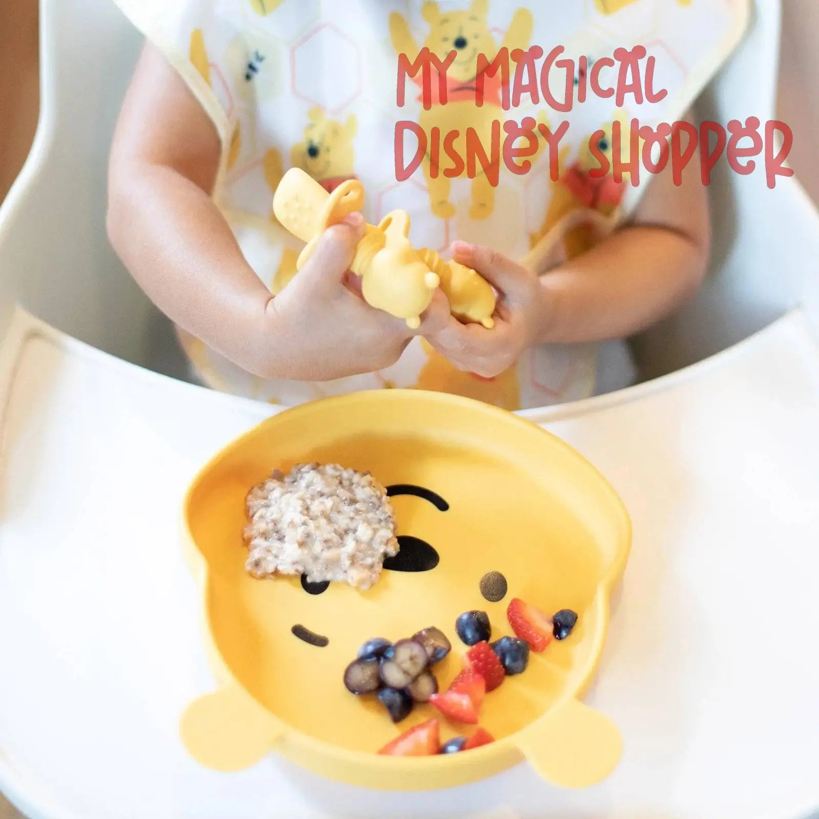Our Disney Winnie The Pooh Dish is perfect for little ones learning to self-feed. The suction plate is perfectly sized for toddler portions. A strong suction base ensures the dish stays put - even with the most aggressive toddler! Great for use on highchair trays or tables. Silicone can withstand low and high temperatures, easily transitioning from the refrigerator or freezer to the oven or microwave. Made with 100% food-safe silicone that's durable, stain and bacteria resistant.
