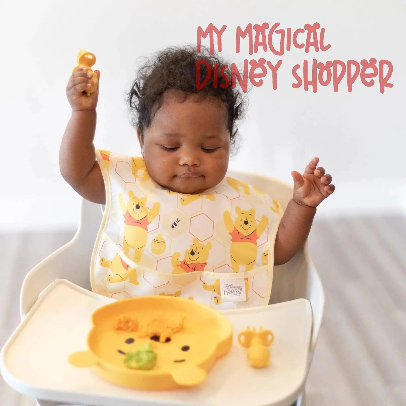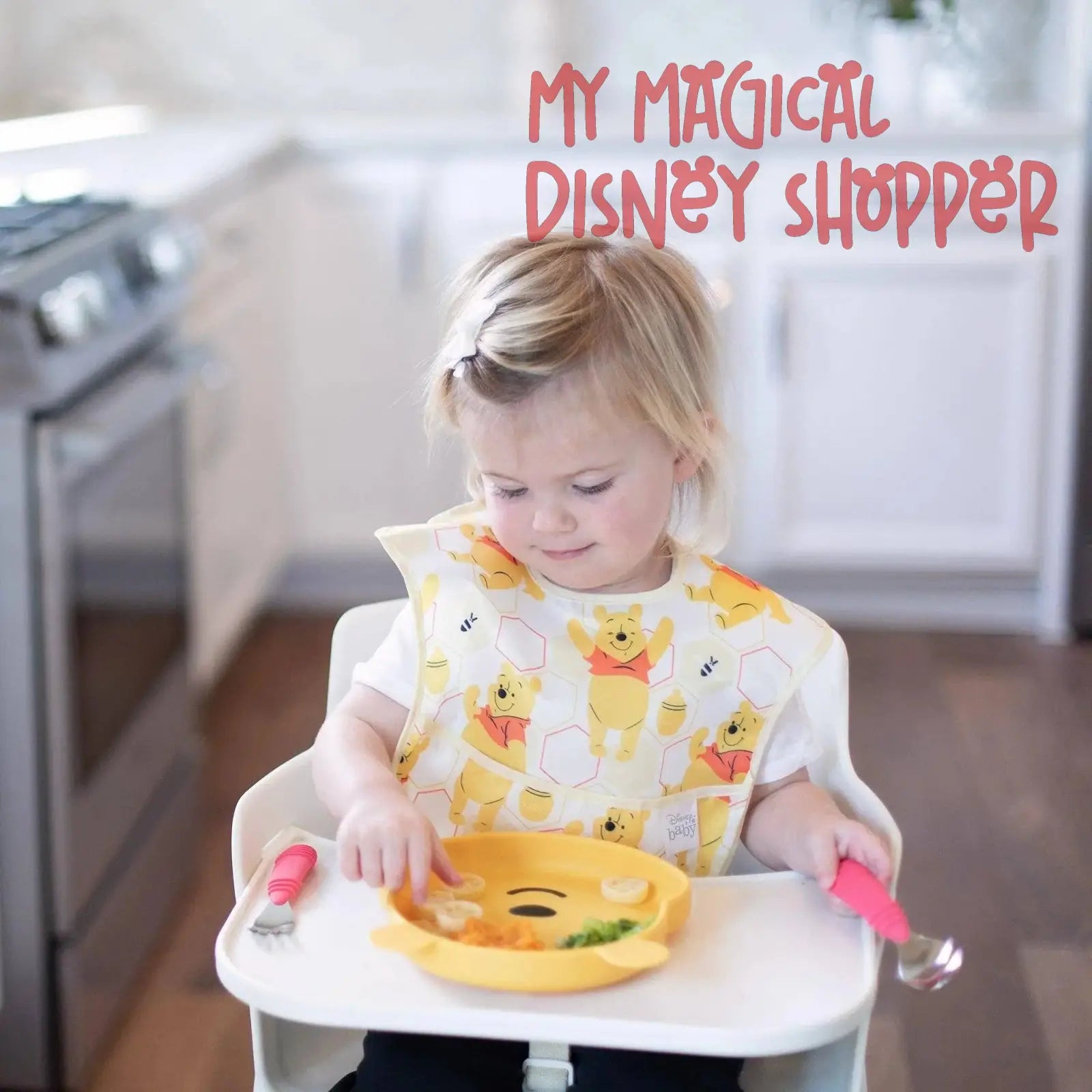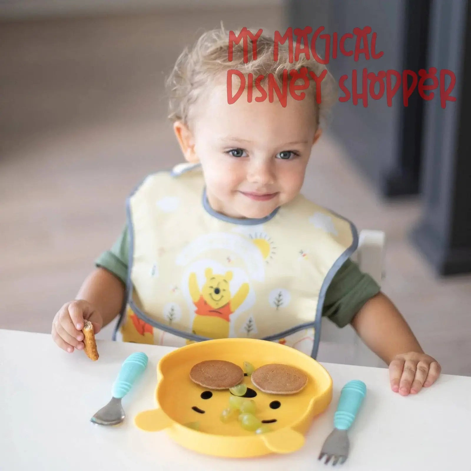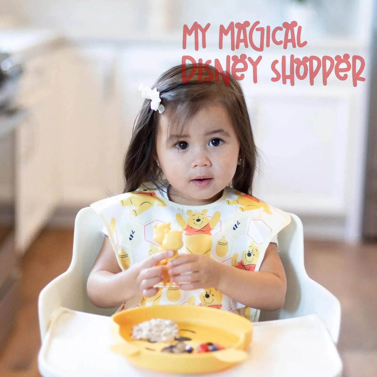Our Disney Winnie The Pooh Dish is perfect for little ones learning to self-feed. The suction plate is perfectly sized for toddler portions. A strong suction base ensures the dish stays put - even with the most aggressive toddler! Great for use on highchair trays or tables. Silicone can withstand low and high temperatures, easily transitioning from the refrigerator or freezer to the oven or microwave. Made with 100% food-safe silicone that's durable, stain and bacteria resistant.
