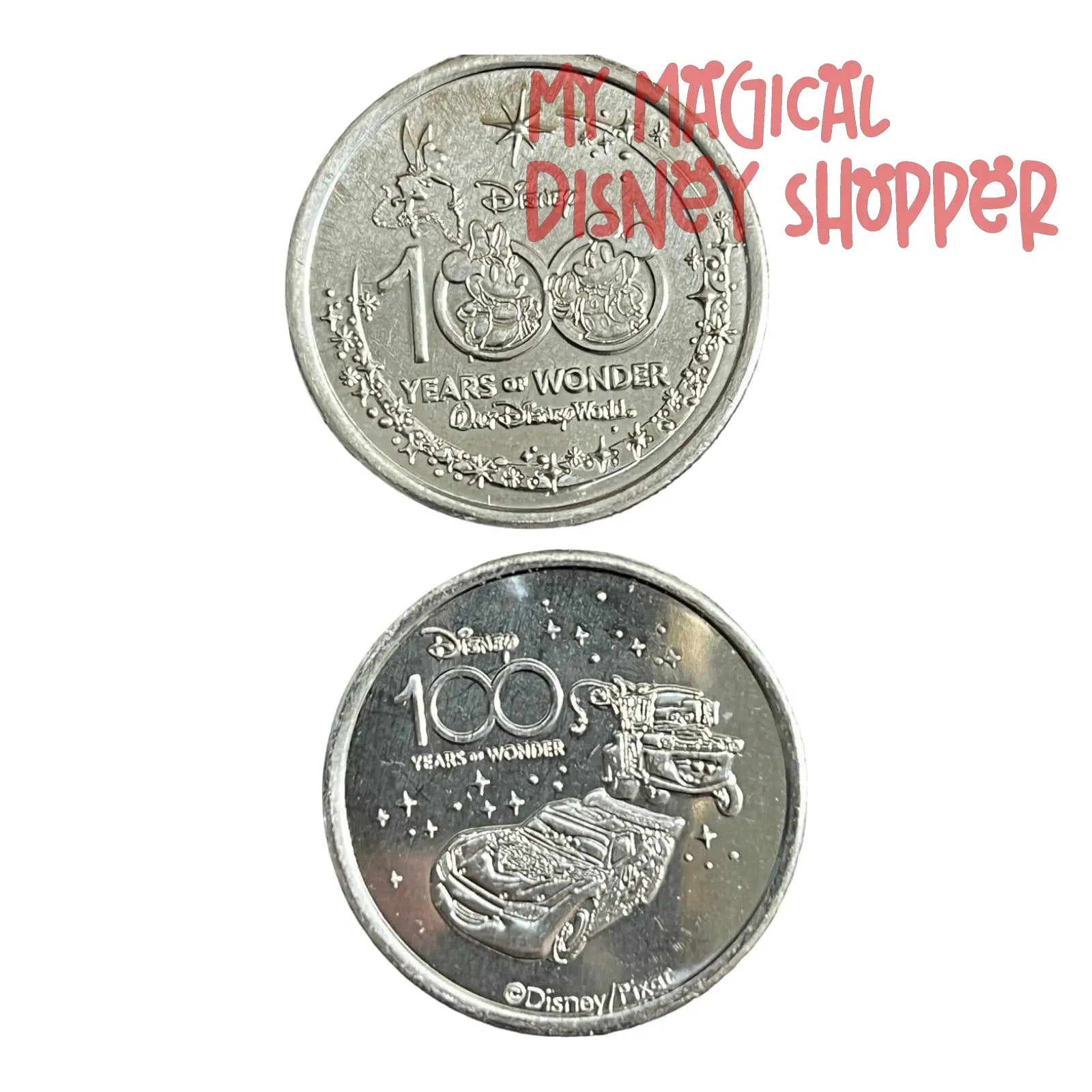Introducing the Disney 100th Anniversary Silver-Colored Medallion, a tribute to a century of high-octane adventures and enduring friendships. Gleaming in a lustrous silver finish, this limited-edition piece showcases the dynamic duo Lightning McQueen and Tow Mater, capturing their spirited camaraderie and racing excitement on one side. On the reverse, the distinguished "100 Years of Wonder" Walt Disney World logo takes center stage, symbolizing a century of cherished stories and magical moments.