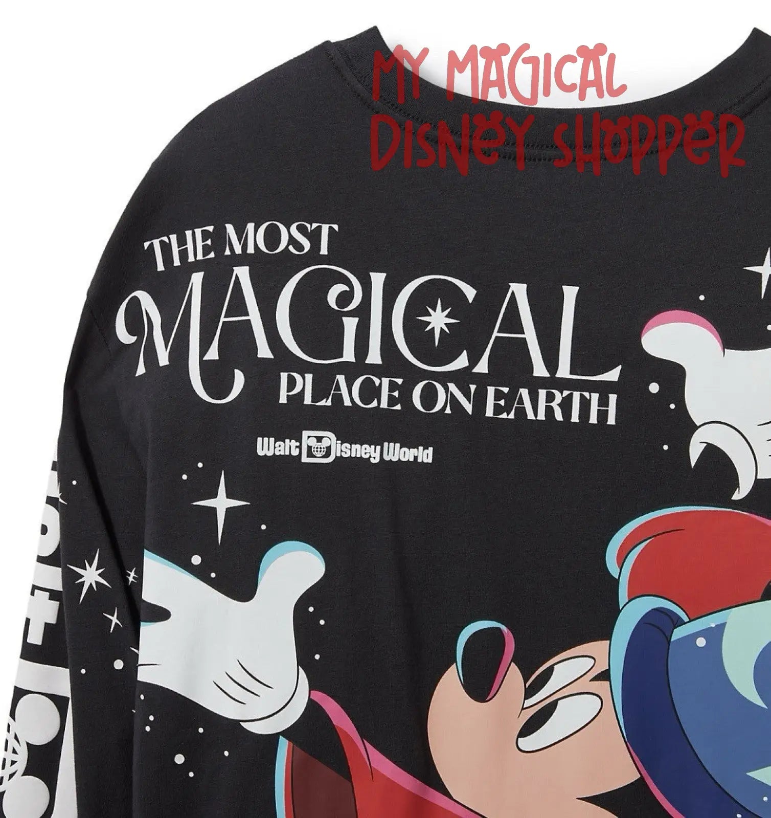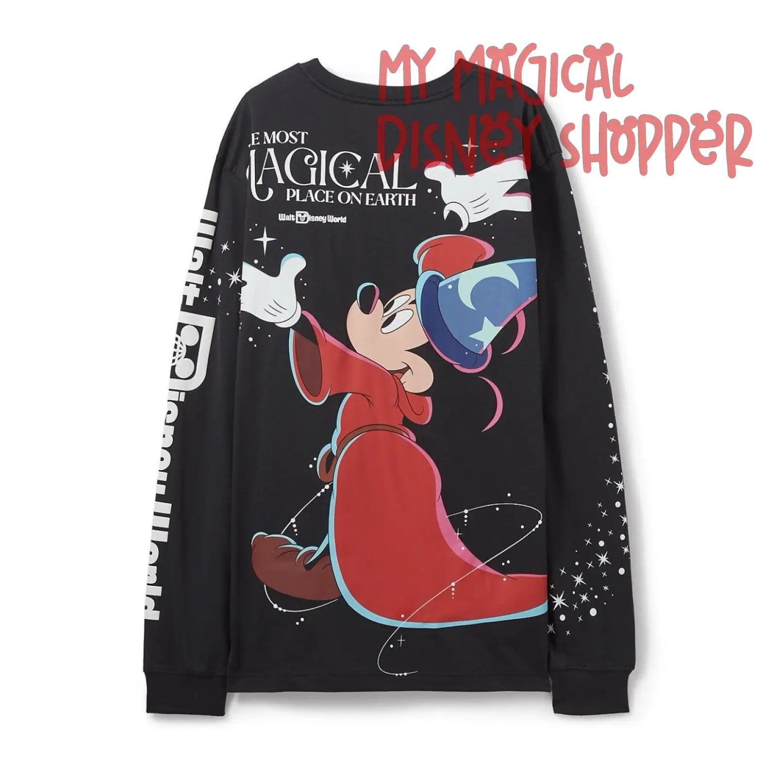 Cast a spell of enchantment wherever you go with this vibrant Sorcerer Mickey long sleeve souvenir tee, straight from Disney’s vacation kingdom! Featuring two-sided graphics, this shirt showcases Mickey Mouse as The Sorcerer’s Apprentice conjuring up colorful magic and memories from every angle. With iconic Walt Disney World and The Most Magical Place on Earth logos, it’s the perfect way to relive the magic of your visit anytime you need a break from reality.