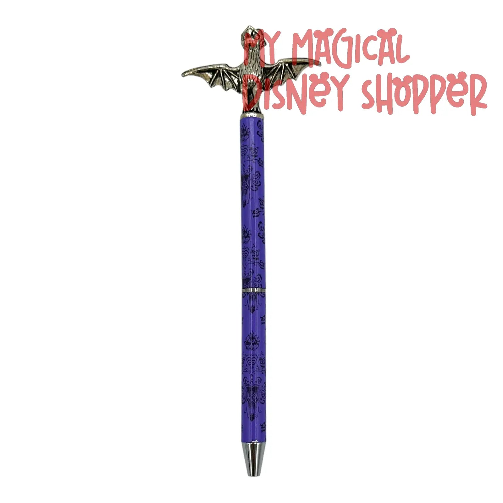 Compose a sympathy note to your dearly departed with this fine writing pen, direct from the desks of The Haunted Mansion. A silvery sculpted bat tops it off in spooky style.