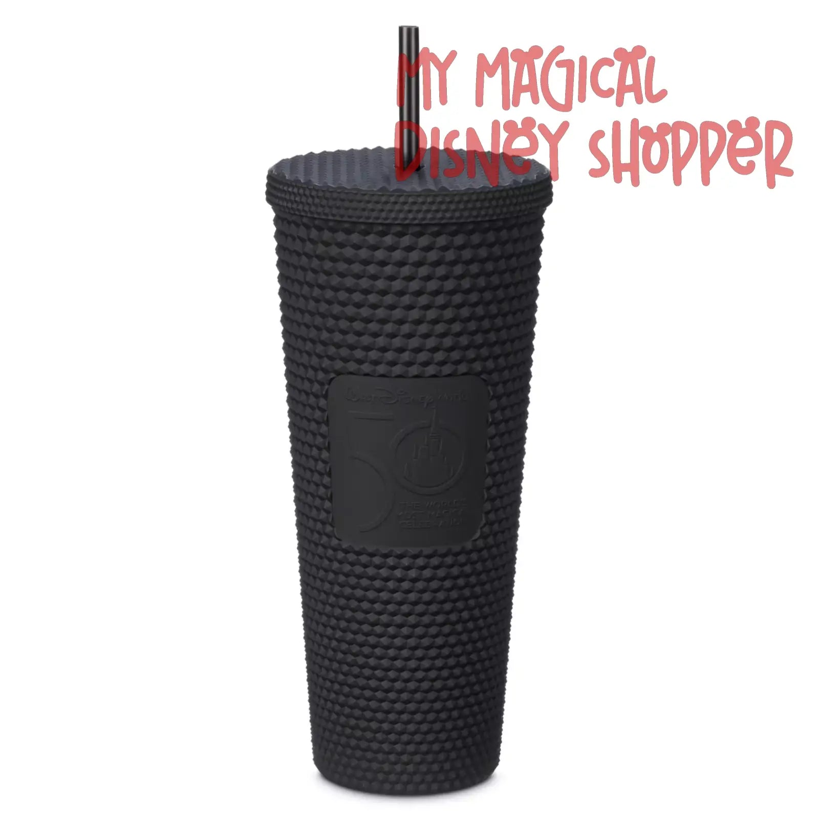 An allover raised geometric design and a matte black finish make this futuristic-looking Starbucks® tumbler a great way to celebrate the past. Created to mark the 50th anniversary of Walt Disney World, you can refresh happy memories of The World's Most Magical Celebration with every sip from its straw.